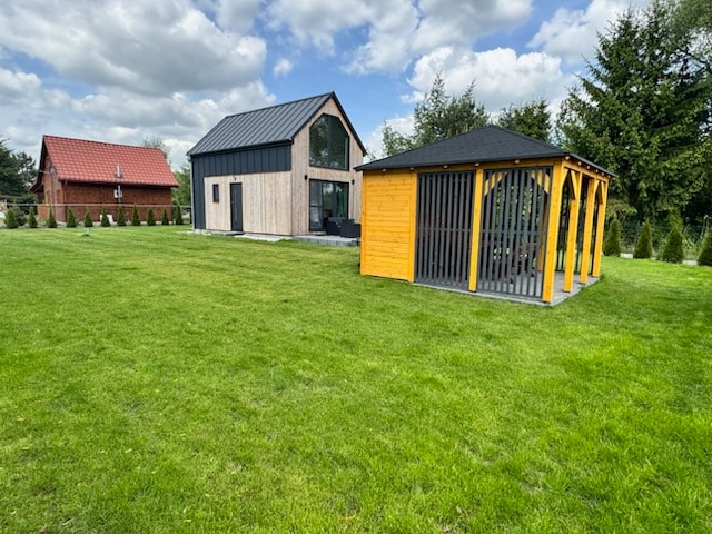 Luksus w naturze pośrodku jezior i lasów. Przygotowaliśmy trzy komfortowe domki w lesie o wysokim standardzie. Połączenie modernistycznego wystroju wnętrza, z otoczeniem dzikiej przyrody na zewnątrz, to kombinacja, którą Państwo pokochają. W każdym domku znajduje się niezbędne wyposażenie tj. kuchnia, łazienka, ogrzewanie podłogowe, grill oraz przestronny, zadaszony taras o powierzchni 20 m2. Zieleń, świeże powietrze, staw, szum drzew i śpiew ptaków - kawałek raju na ziemi.