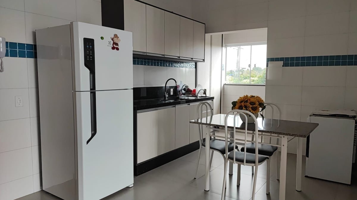 Espaço aconchegante, completo e privativo, ideal para relaxar com conforto e tranquilidade. Possui ar-condicionado, Wi-Fi, TV, cama guarda-roupa e banheiro privativo. Cozinha equipada com fogão, geladeira e microondas. Ambiente silencioso, organizado, com estacionamento coberto na entrada. Colchão extra para terceiro hóspede adulto ou criança disponível mediante taxa. Localização prática, próxima a supermercado com padaria, farmácias, academia e comércios em gerais.