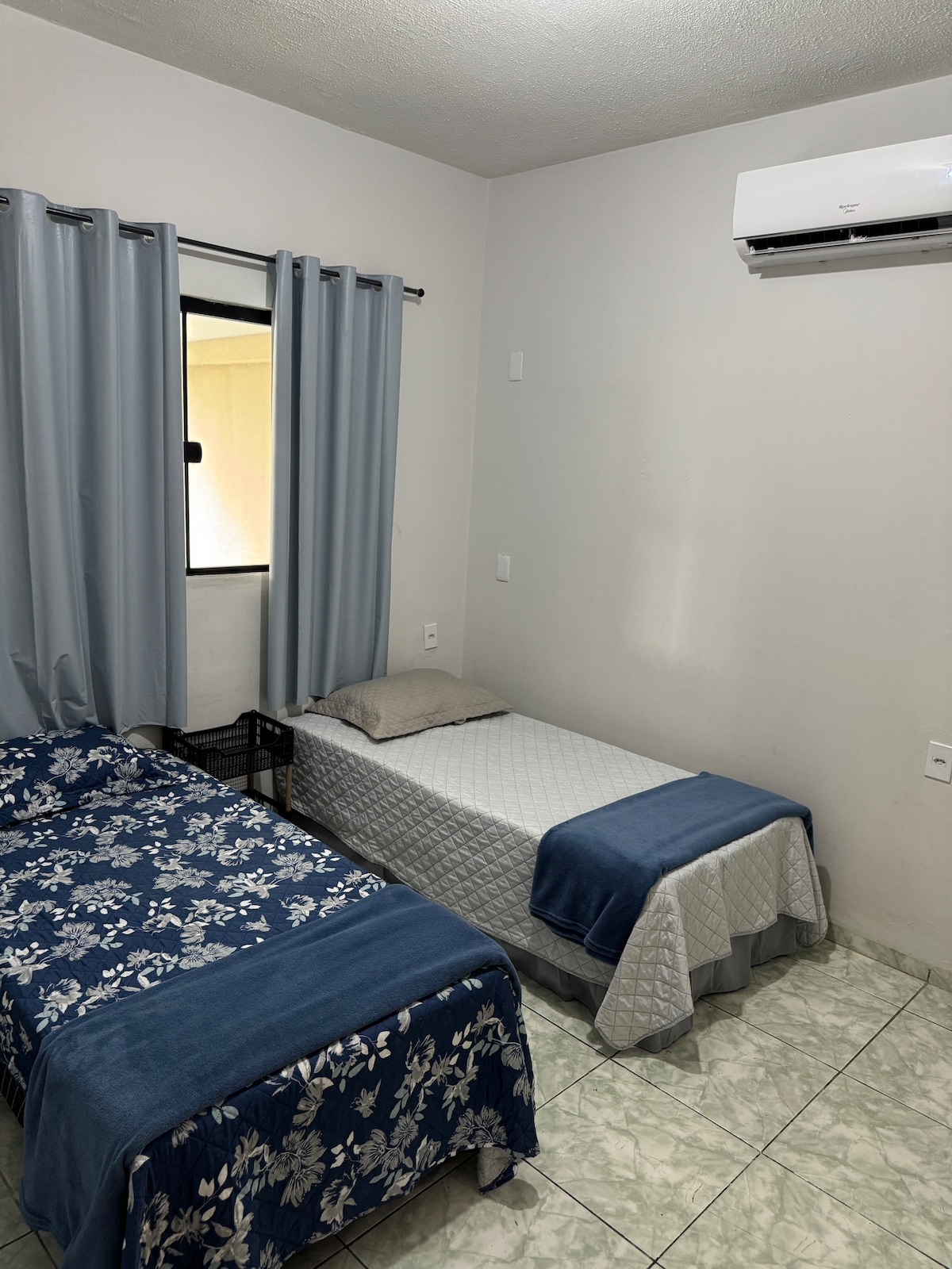 Casa mobiliada em Lucas do Rio Verde MT, com 2 quartos climatizados, cozinha equipada e máquina de lavar. Acomoda até 7 pessoas e está próxima a hospital, mercados e farmácias, com FÁCIL ACESSO ÀS PRINCIPAIS AVENIDAS QUE CONECTAM À BR. Ideal para estadias curtas de até 3 MESES.