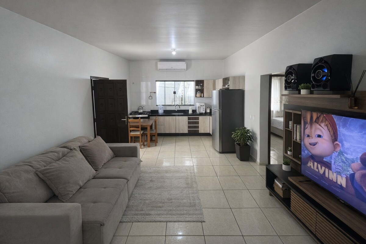Um espaço calmo, confortável e ideal para famílias, empresas e executivos, seja para lazer ou a trabalho. A casa é ampla, bem arejada, completa e segura. Conta com garagem grande para até 5 carros dentro do terreno e está localizada em um bairro tranquilo e bem localizado, próximo a mercados, lanchonetes, Havan e Atacadão. Conforto, praticidade e ótima localização para uma estadia agradável. Será um prazer receber você. Seja muito bem-vindo (a).