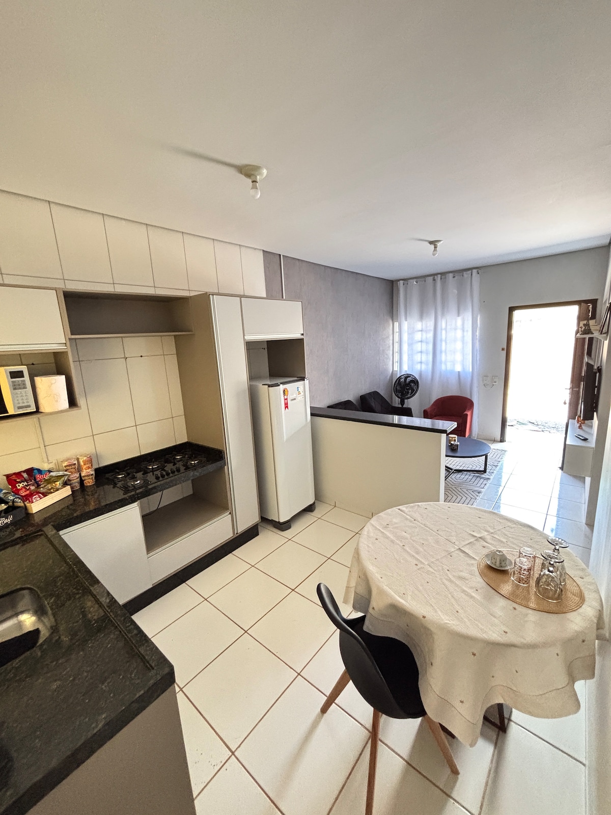 Na Minicasa1, você vai amar sua estadia neste lugar inesquecível é bem privativo, possuí garagem para 1 carro. O espaço não é compartilhado é único, e contém ar condicionado no quarto cama de casal, guarda roupa de 4 portas. Sala e cozinha conjugada com ar condicionado e tv geladeira fogão microondas mesa com 4 cadeiras máquina de lavar churrasqueira armário de aço com utensílios de cozinha pratos talheres xícaras copos taças e panelas. incluso wi-fi. O local é muito bem localizado.
