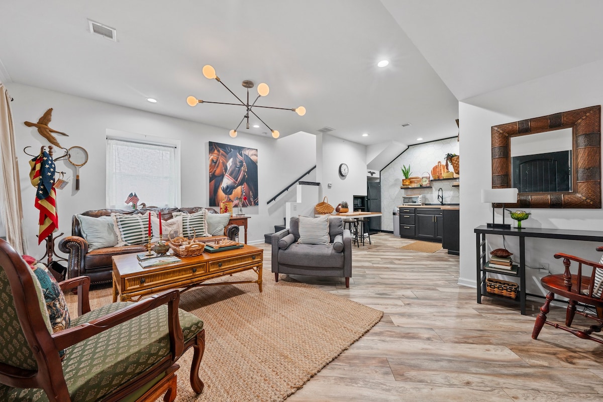 Peaceful privacy on our 227 acre farm, convenient to Bowling Green, Mammoth Cave, and Barren River Lake. The 900 sq ft loft above our home’s garage has private exterior entrance to the finished modern farmhouse loft with completely separate ductwork and HVAC system. The loft features everything you need to stay at the farm and relax: high end, furnished kitchen to cook meals in & fiber optic internet to work or stream. Adirondack chairs and a propane fire pit make for wonderful stargazing.
