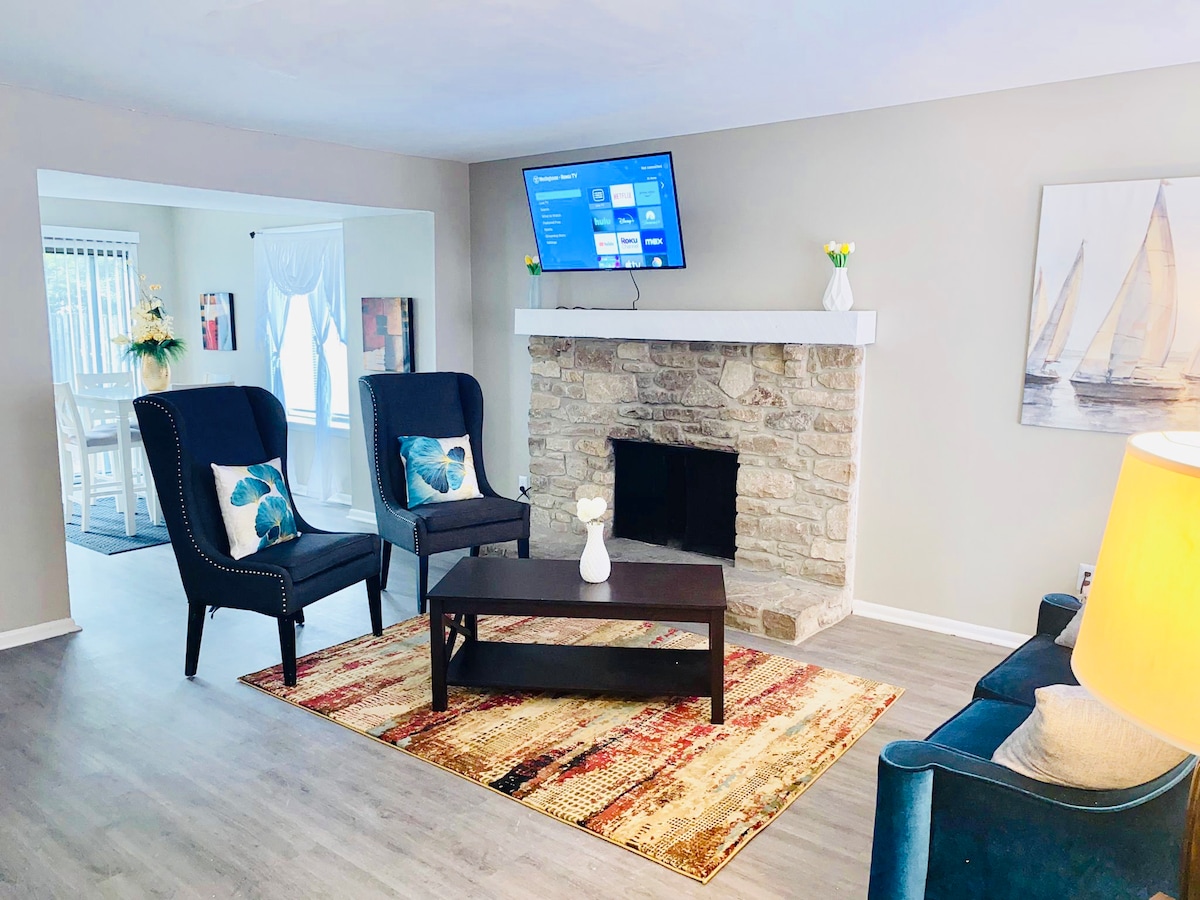 Relax in this modern 4BR Indianapolis getaway, perfect for families, groups, traveling nurses, and business travelers. Just minutes from Fountain Square, Lucas Oil Stadium, the Convention Center, major hospitals, and downtown. Sleeps 12 with multiple living areas, a private hot tub, and easy parking with free street parking plus a garage. Ideal for short or extended stays.