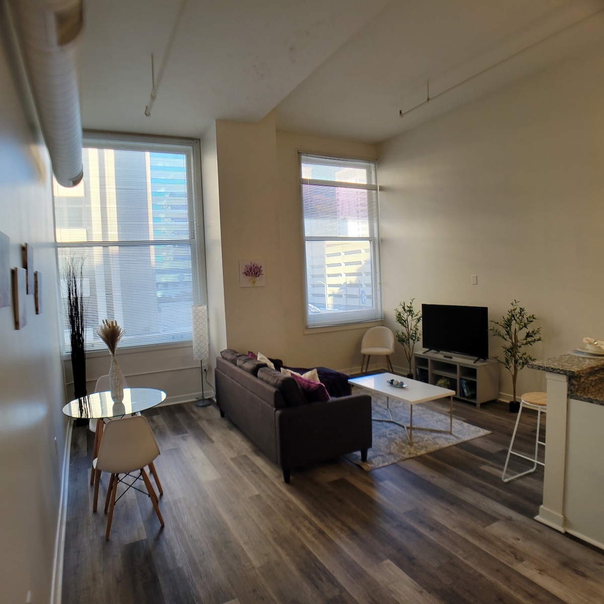 🌆 Sky-High Hideaway 🌆 Stay steps from everything in downtown Indy! This stylish 2BR, 2BA apartment blends historic charm with modern comfort: ✔︎ Skywalk access ✔︎ Free parking ✔︎ High-speed Wi-Fi ✔︎ 2 full baths ✔︎ Washer/dryer ✔︎ Flexible sleeping for 7 ✔︎ Smart TVs & coffee bar. Walk to Lucas Oil Stadium, Convention Center, Gainbridge Fieldhouse & more. Perfect for events, business trips, or family getaways. More space, more privacy, and way more value than any hotel. Book your stay today!