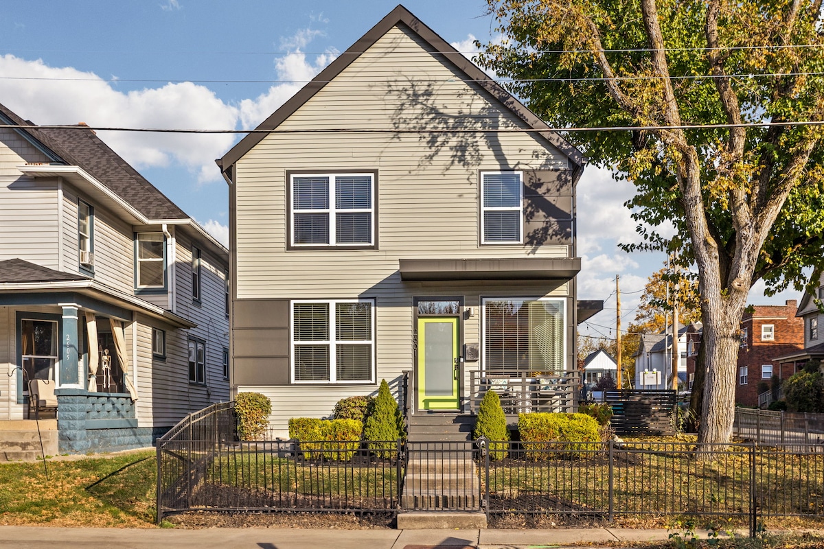 Welcome to your ultimate stay in Indy’s Bates-Hendricks neighborhood - New construction just minutes from Lucas Oil Stadium and Gainbridge Fieldhouse. Your trip starts the moment you step inside: drop your bags, hit the arcade, pour a drink, and let the vibe take over. Game nights downstairs, hot-tub evenings outside, gym sessions and dual workspaces to keep your routine alive, and pizza-oven dinners under the sky. Perfect for game weekends, family trips, and unforgettable group getaways.