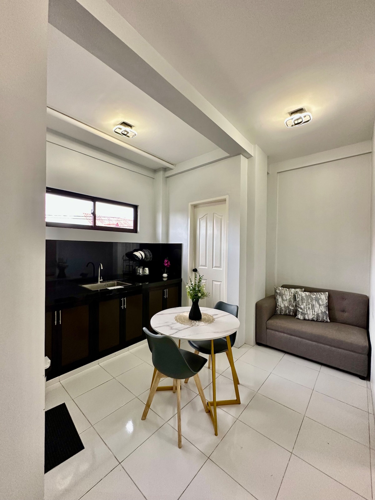 Accommodation: 1 Bedroom Up and down apartment with bunk beds —sleeps up to 4. Amenities: Fully-equipped kitchen, stovetop, electric kettle, private entrance. Location: Located near Capitol, Perez Street Purok 3 Ipil Barangay 9, —just a 3–5 minute walk to STI, Convention Centre, and very close to markets, mini-marts, schools, and hospitals. Families or groups needing more space, privacy, and self-catering in a central location.