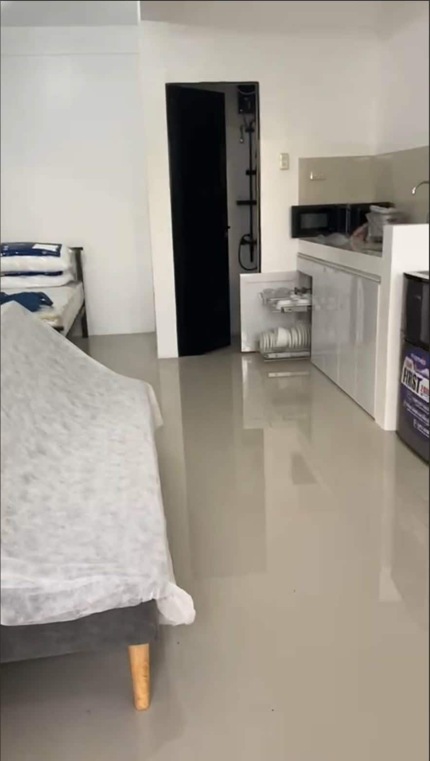 🏠Relax with your love ones or whole family at this peaceful place to stay. maximum: 2 pax Additional : 250/pax studio type ✳FREE cleaning, once a week / Change bedsheets/ blankets/ towels ✅Split type aircon ✅Wifi/netflix ✅Electric fan ✅Mini ref ✅Clean Comfort room ✅Clean kitchen sink ✅Cabinet ✅Dining Set ✅food utensil ✳Allowed cooking ✅ Purified Water jag ✅Rice cooker ✅water dispenser ✅Stove ✅Frying Fan, Cooking pot ✅Exercise equipment ✅Electric foot massage ✅cctv in premises