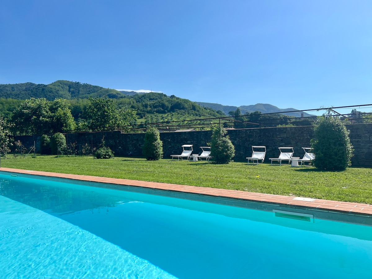 A tre chilometri dalle mura di Lucca, Villa in stile Liberty ristrutturata fedelmente mantenendo il fascino originale, con affreschi d'epoca e dotata dei comforts moderni, immersa nel verde, con grande parco con al centro la piscina riscaldata, tutto recintato con parcheggio interno, molto adatta anche per bambini. Zona tranquilla per passeggiate, giri in bicicletta verso Lucca centro storico e per raggiungere le splendide Ville Nobiliari lucchesi del 1500 e l’Autostrada per Firenze e mare.