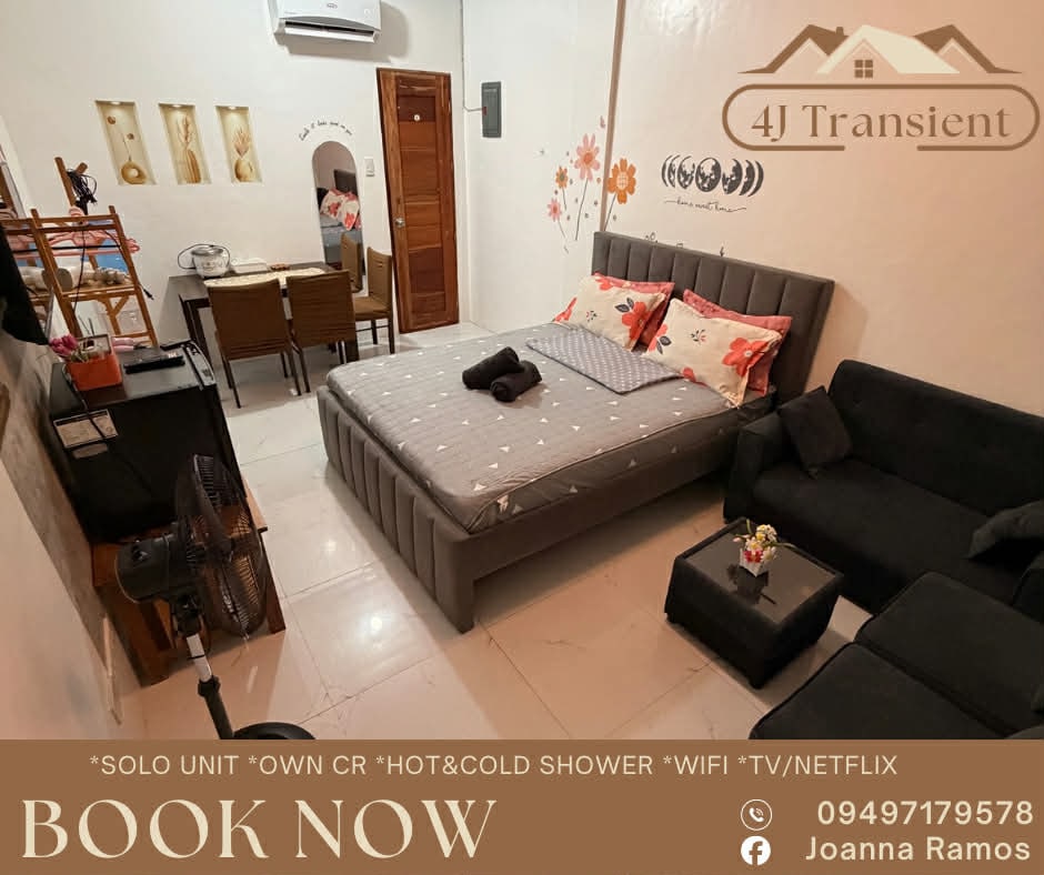 🏠Relax with your love ones or whole family at this peaceful place to stay. maximum: 2 pax Additional : 250/pax studio type ✳FREE cleaning, once a week / Change bedsheets/ blankets/ towels ✅Split type aircon ✅Wifi/netflix ✅Electric fan ✅Mini ref ✅Clean Comfort room ✅Clean kitchen sink ✅Cabinet ✅Dining Set ✅food utensil ✳Allowed cooking ✅ Purified Water jag ✅Rice cooker ✅water dispenser ✅Stove ✅Frying Fan, Cooking pot ✅Exercise equipment ✅Electric foot massage ✅cctv in premises