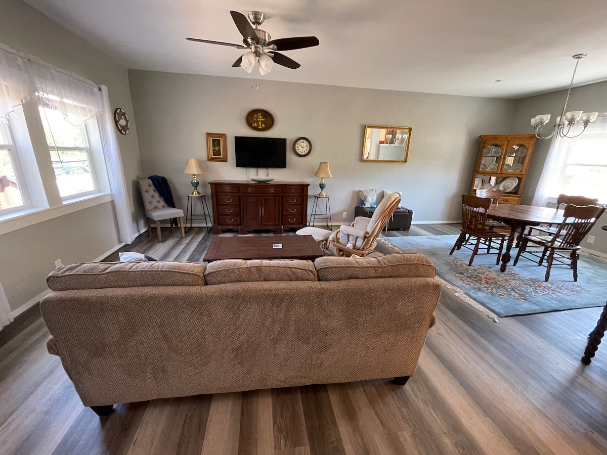 Relax with the whole family or friends at this peaceful private unique place to stay. Have fun or just enjoy quiet time. Swim or hang by the pool or hot tub. BBQ or cook in the kitchen and eat while you look at the lake view! There are smart phone jacks in each room, plenty of parking, a private fenced in yard and screen room. This property has all the added modern comforts of a forced air heating and cooling system, washer/dryer and safe play area for the kids!!
