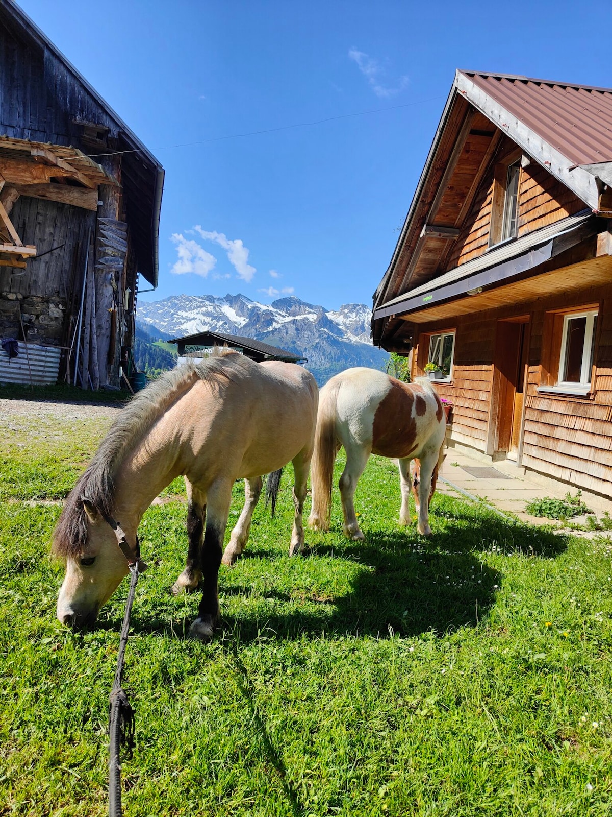 Private Unterkunft für zwei Personen in schönem Holzhäusschen mit toller Aussicht auf einem Bauernhof mitten im Grünen. Angebot für zwei Personen inklusive Frühstück. Es kann ein Candle light Dinner für Fr. 160.- dazu gebucht werden(bitte vor bestellen).Bezahlung vor Ort mit Twint oder Bar. Die Küche kann gegen eine Reinigungsgebühr von Fr. 25.- benutzt werden.