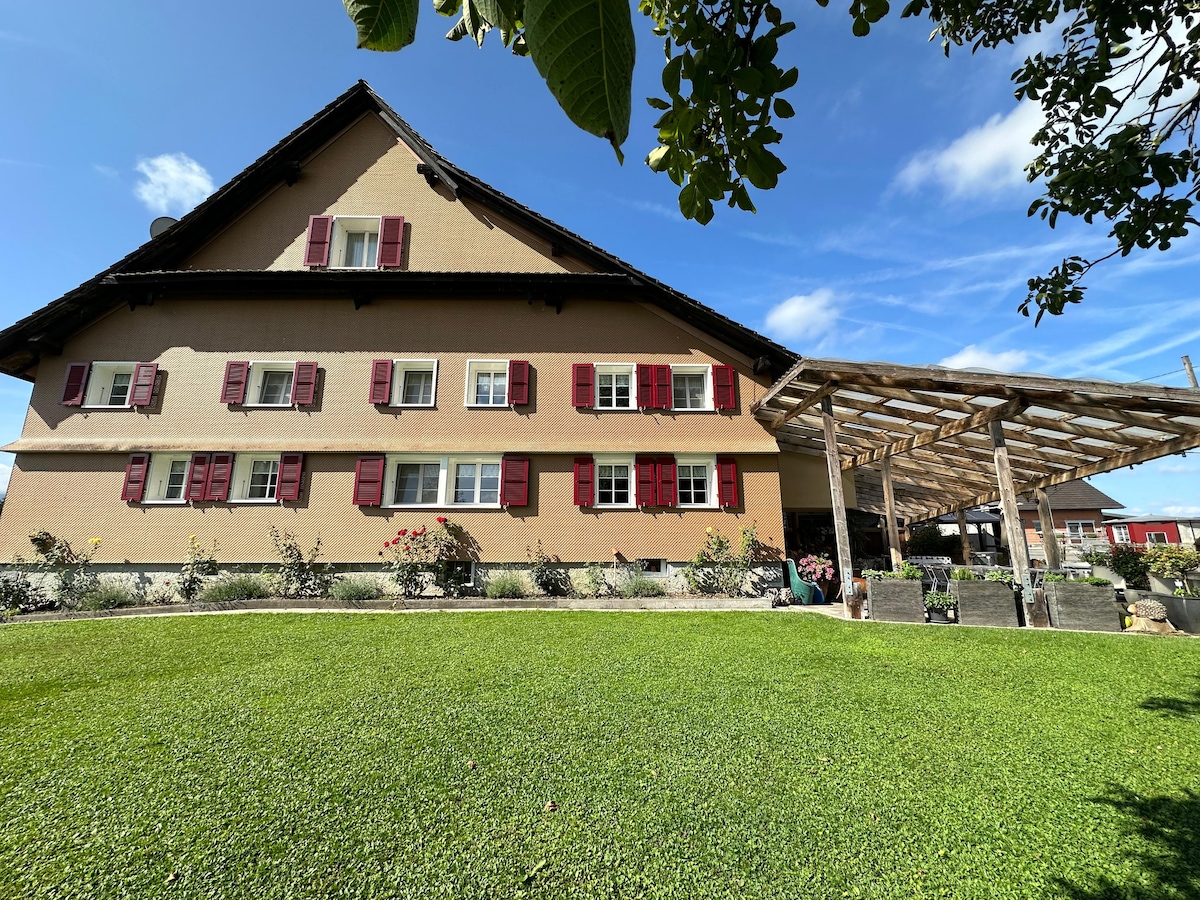Unser barrierefrei ausgestattetes Ferienhaus ist nur 15 Autominuten von Luzern entfernt und bietet Ihnen grosszügigen Platz für bis zu 21 Personen. Geniessen Sie eine gut ausgestattete Küche oder lassen Sie sich von Lucia kulinarisch verwöhnen. Unsere Terrasse mit malerischem Blick auf die niedlichen Kleintiere rundet Ihren Aufenthalt ab. Wir freuen uns darauf, Ihnen einen unvergesslichen Aufenthalt zu bereiten!