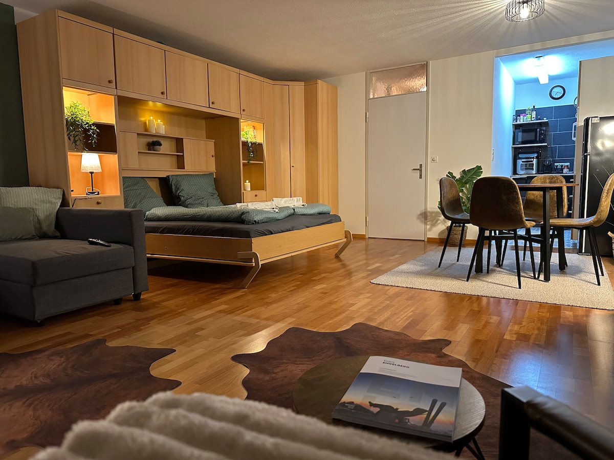 Neu Renovierte Wohnung mit eigener Küche und eigenem Badzimmer. Das grosse Zimmer ist intelligent in Schlaf- und Wohnbereich unterteilt. Vor dem Wohnhaus gibt es einen Spielplatz. In weniger als 5 Min zu Fuss gibt es ein grosses Einkaufszentrum sowie diverse Freizeitaktivitäten (Kino, Shopping). Die Wohnung ist aufgrund der zentralen Lage nahe an der Autobahn perfekt für Ausflüge oder für das Pendeln.