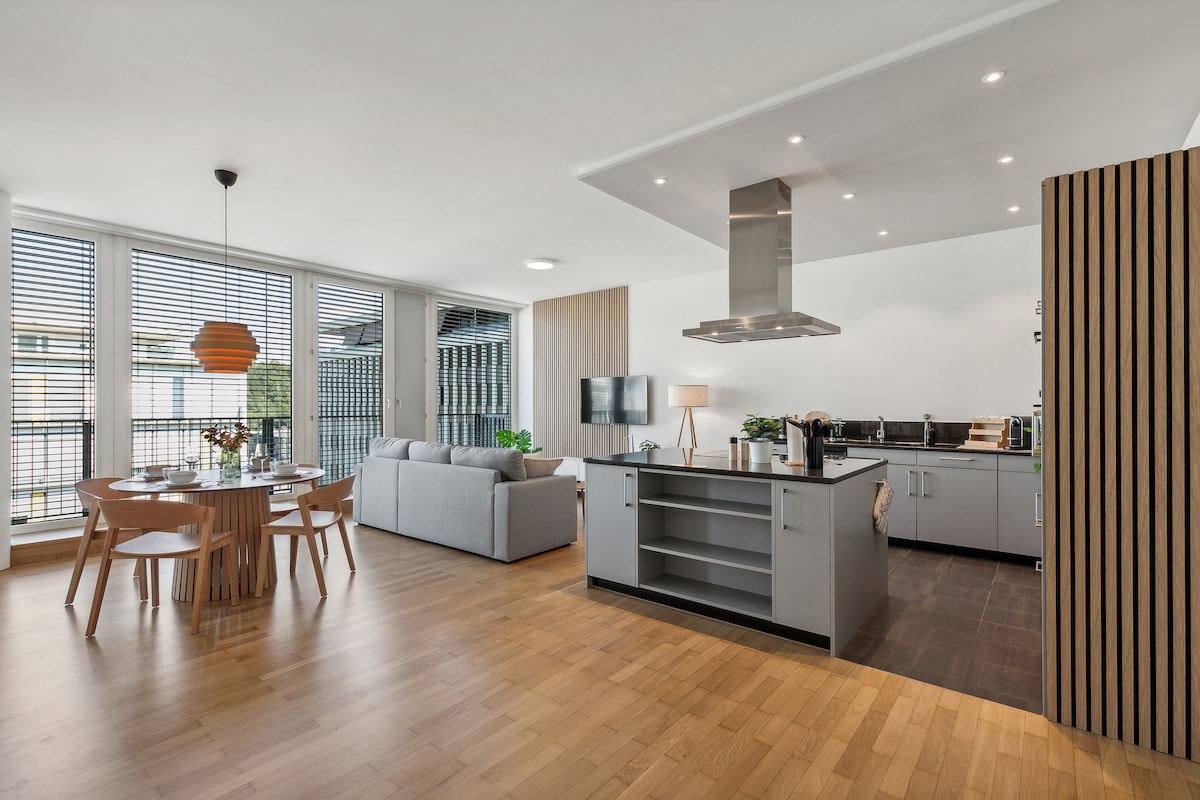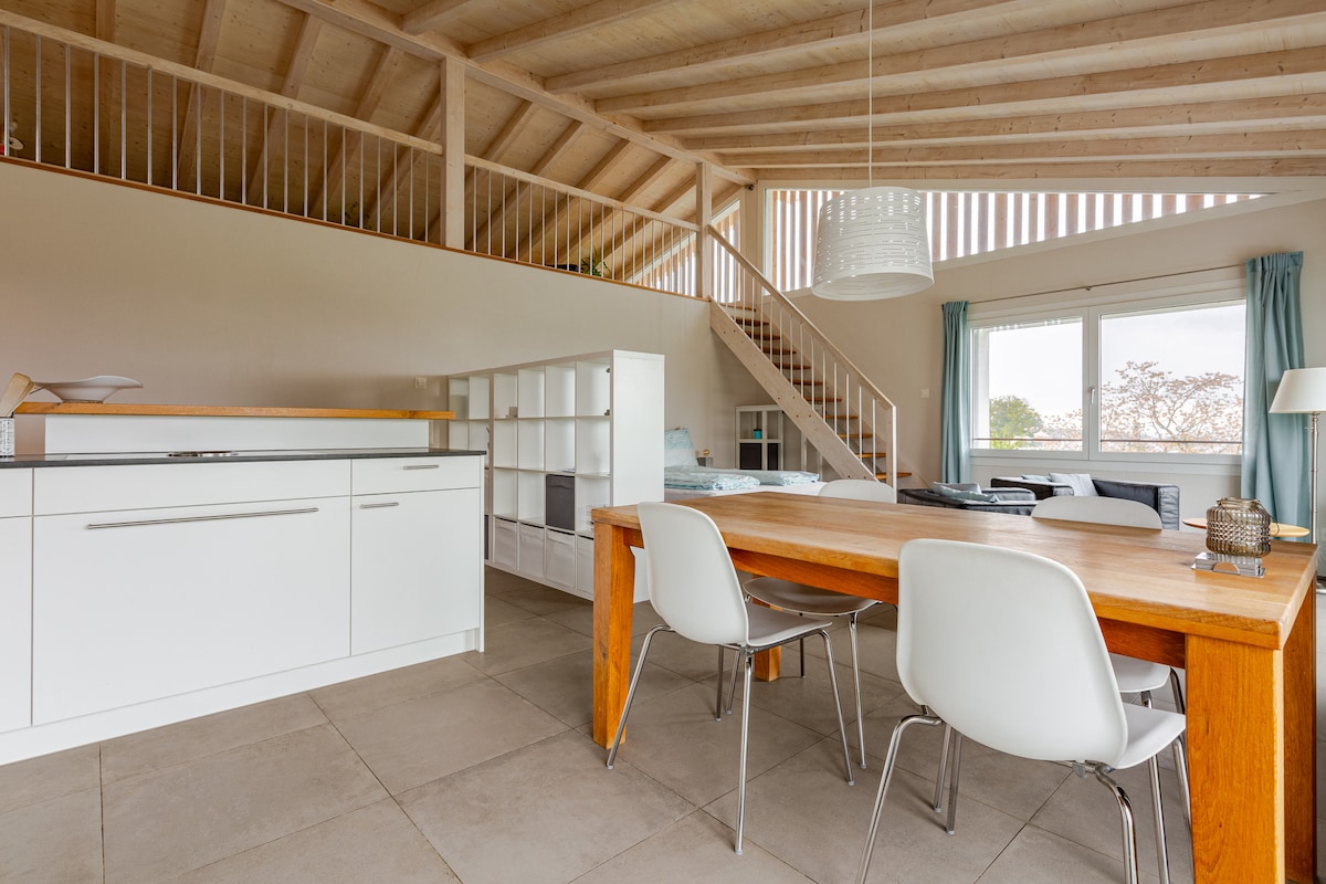 Modernes rollstuhlgängiges Loft mit herrlicher Seesicht in ehemaliger Emmentaler-Käserei. Ländlich jedoch zentral gelegen. Gratis Parkplatz vor dem Haus. Geniesse den Aufenthalt mit Billardspielen und Wanderungen in der Natur. In 5 Gehminuten bist du am See. Zudem sind 2 Citybikes, 2 Stand up Paddle und ein Beamer mit Netflix für dein «homecinema» vorhanden. Die Unterkunft ist mit 134m2 sehr geräumig und familienfreundlich. Es hat 6 Schlafplätze zu Verfügung - perfekt für Familienferien!
