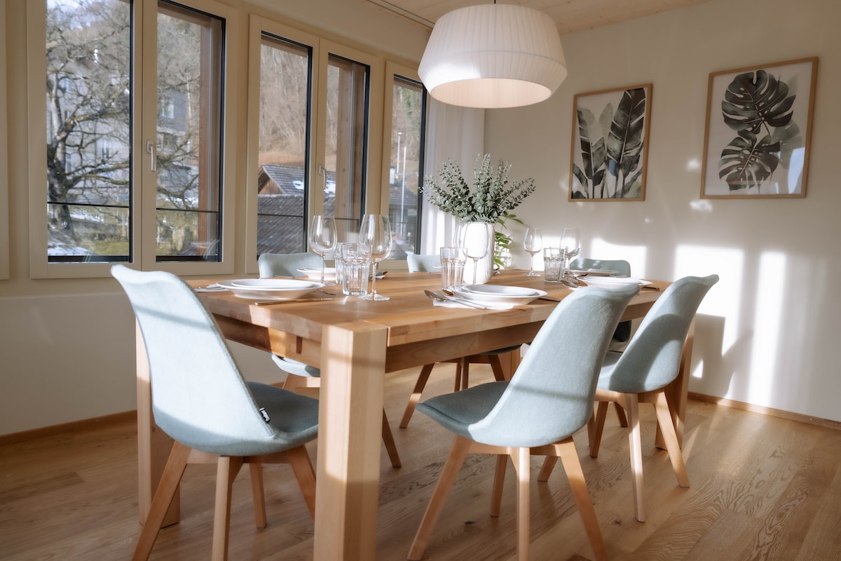 Stylish and comfortable private apartment, centrally located (4 min to highway) between Lucerne (20 min) and Interlaken. Quietly set at the edge of a village in the heart of Switzerland and surrounded by nature, it offers a terrace, rooftop terrace with stunning views (Mt Pilatus), 2 bedrooms, kitchen, living & dining room, bathroom, and parking. Supermarket (5 min walk) and restaurants nearby. Famous lakes a few minutes away. Perfect to enjoy, hike, bike, ski and relax in all seasons.