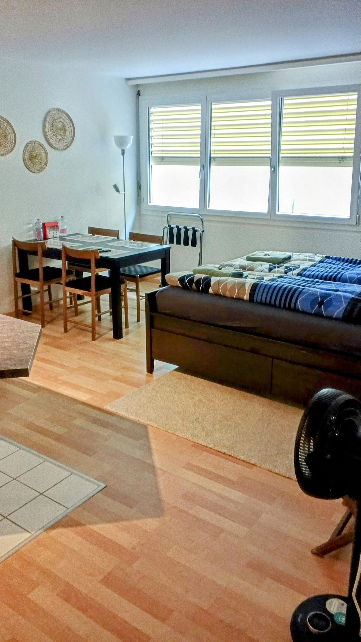 enjoy a great stay in this new beautiful + very central flat for max. 4 persons, kids are welcome as of age 7 2 room apartment (1 separate bedroom +1 separate living room, new comfortable bed, including dining + kitchen), large bathroom + big bathtub from Airport Zurich: 1h 15min Free car parking, only during Nov 25 for new bookings as of Nov 9. Please check availability first, thanks. private car parking (payable) onsite, ask for availability to reserve it has a small elevator