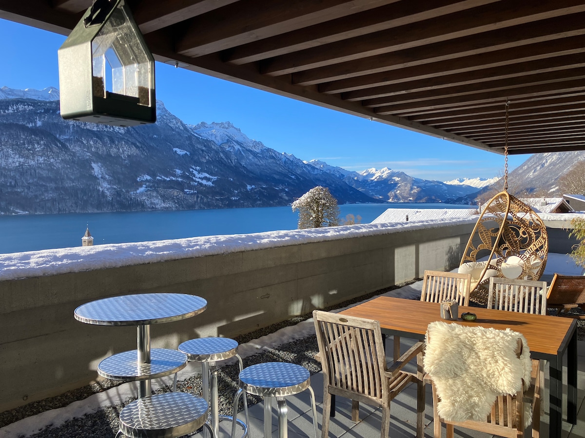Continental breakfast on request - Payment on site - not included From walking and hiking to mountain hiking, Brienz offers everything, and the apartment is the ideal starting point for such activities. For those who seek strength in tranquility, enjoy the view of the great outdoors from the balcony. In summer, a dip in the cool Lake Brienz is not far away, and in winter, the Axalp, Hasliberg, and Jungfrau ski regions are nearby. Free outdoor parking.