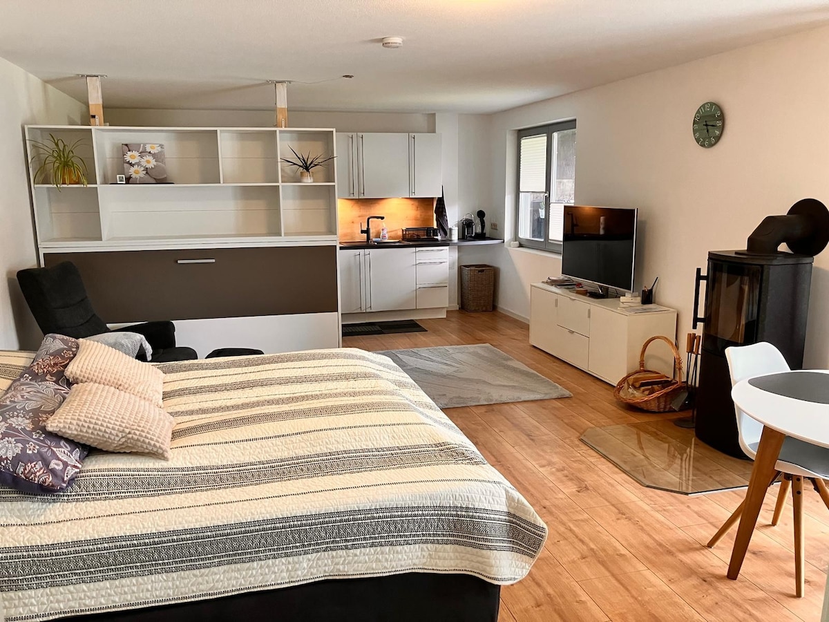 The holiday apartment is modernly furnished and has everything you need for a relaxing stay. Thanks to its location, it's pleasantly cool in summer, while a fireplace provides cozy warmth in winter. The adjoining garden is also a lovely place to unwind. Sleeping options include a comfortable box-spring bed and a Murphy bed.
