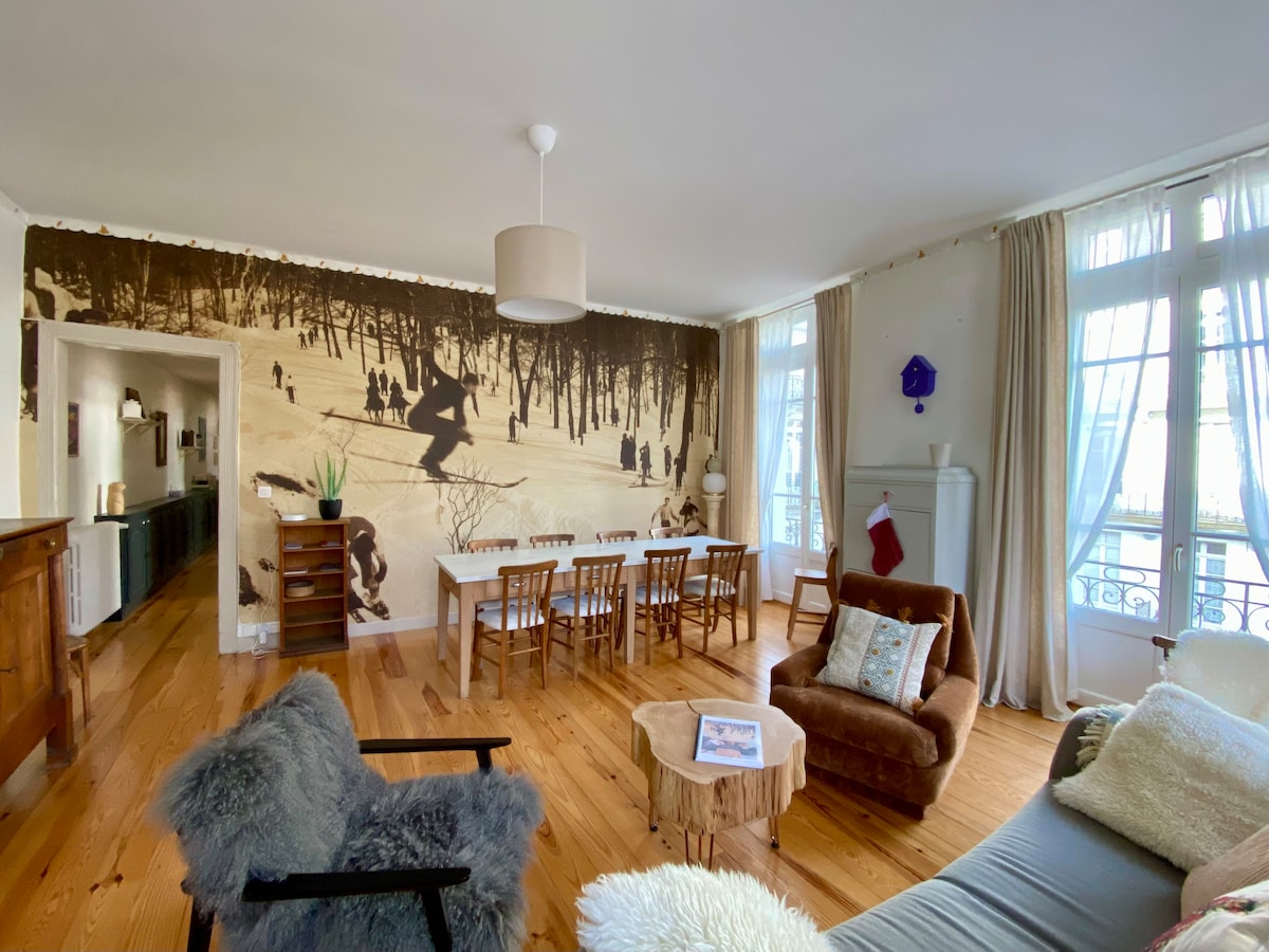 Beautiful, light and great views 52 sq 2 bedroom apartment on the first floor in a historic Haussman building. Fantastic balcony with views of the mountains. Wi Fi and Cable TV available. This apartment has a secure ski and bike cellar. Fully equipped kitchen. Central heating throughout the apartment. Towels and linen are provided. Situated very central, close to shops, Thermal Baths and Ski lift. Free parking spaces opposite the front entrance.