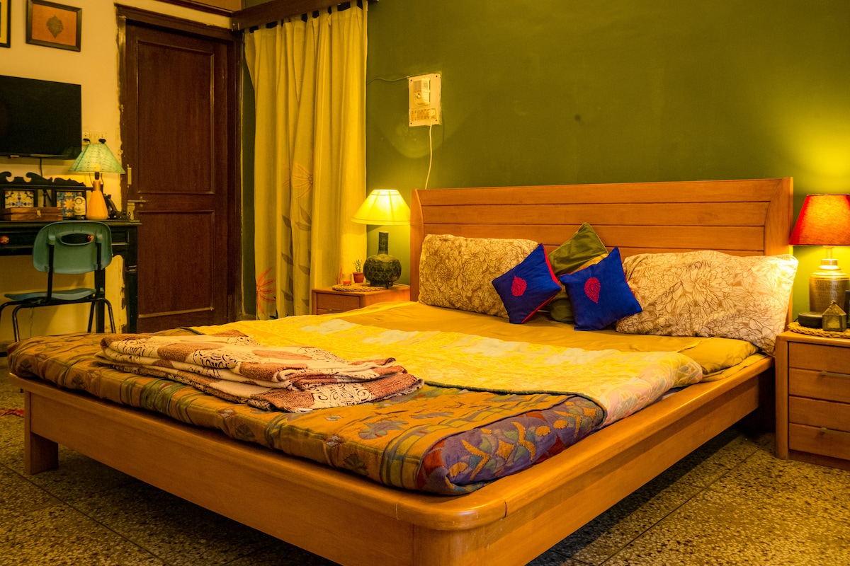 Experience luxury in this 2-bedroom suite near the iconic Taj Mahal Hotel, Lucknow, with a Complimentary Breakfast! Enjoy the independent quiet Bungalow and two big inter-connected elegant rooms for the price of one, a private garden perfect for coffee or evening chats, and premium comforts-55" smart TV, high-speed WiFi, meeting space, and a stocked pantry. Immerse yourself in royal Lucknow charm, steps away from malls and the KNK salon for ultimate relaxation. Waiting to welcome you!