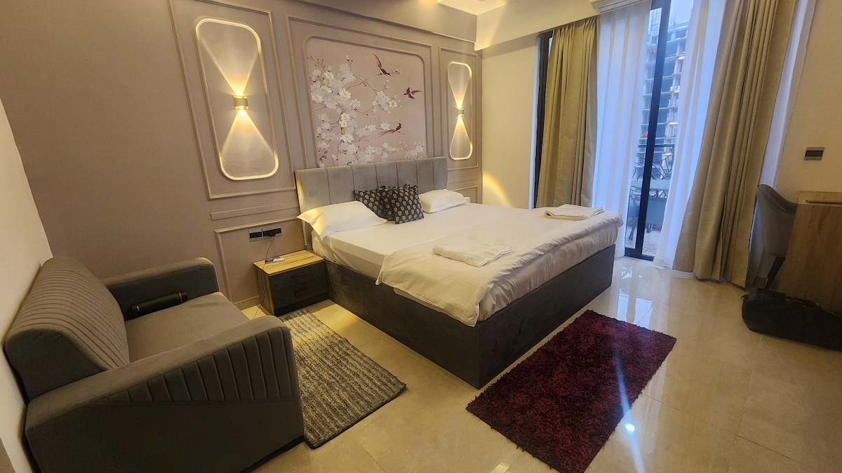 Welcome to Arth Studios! We offer the perfect blend of comfort and convenience, nestled in a prime location of Gomti Nagar Extension, Lucknow. Business center, Lulu or Phoenix Malls, Airport, local attractions, dining, and entertainment hub are nearby. Enjoy the city view from your private balcony. Our trained HK team ensures that everything is kept spotless and comfortable during your stay with 24/7 support.. Experience the best of the city while enjoying the comforts. Book your stay today!