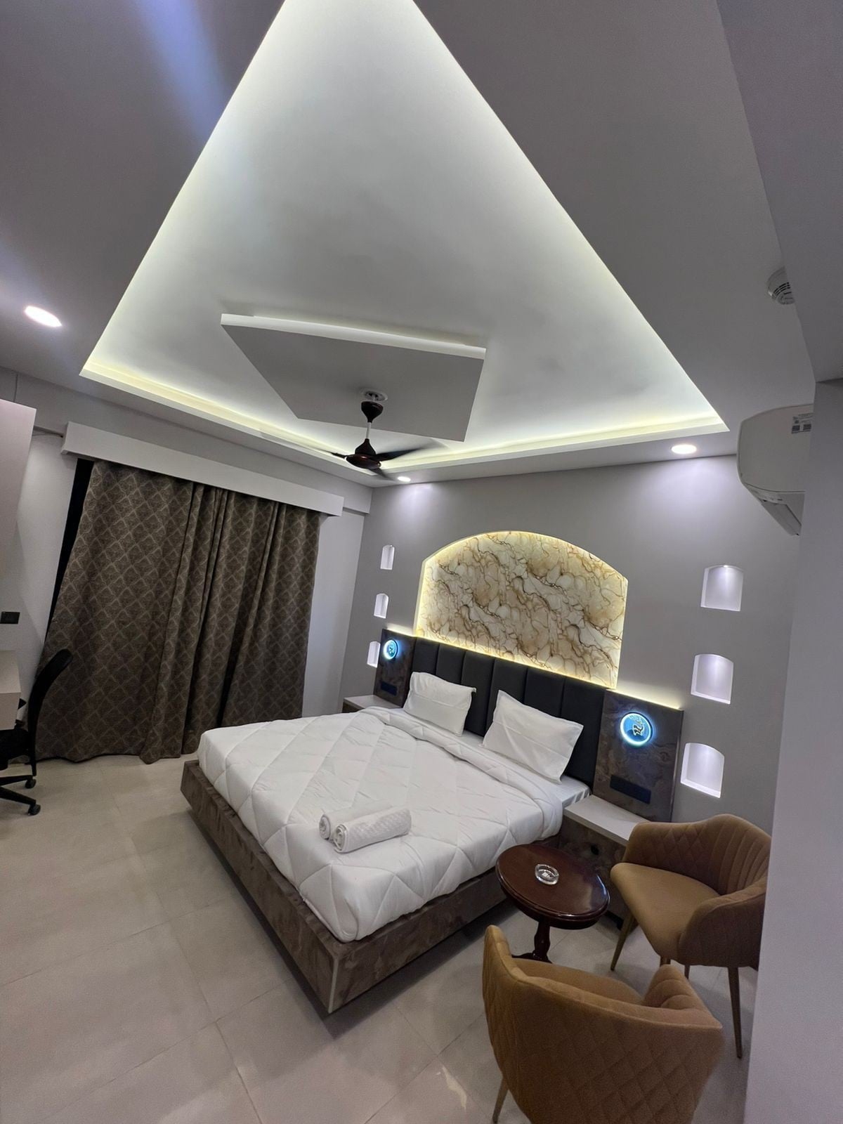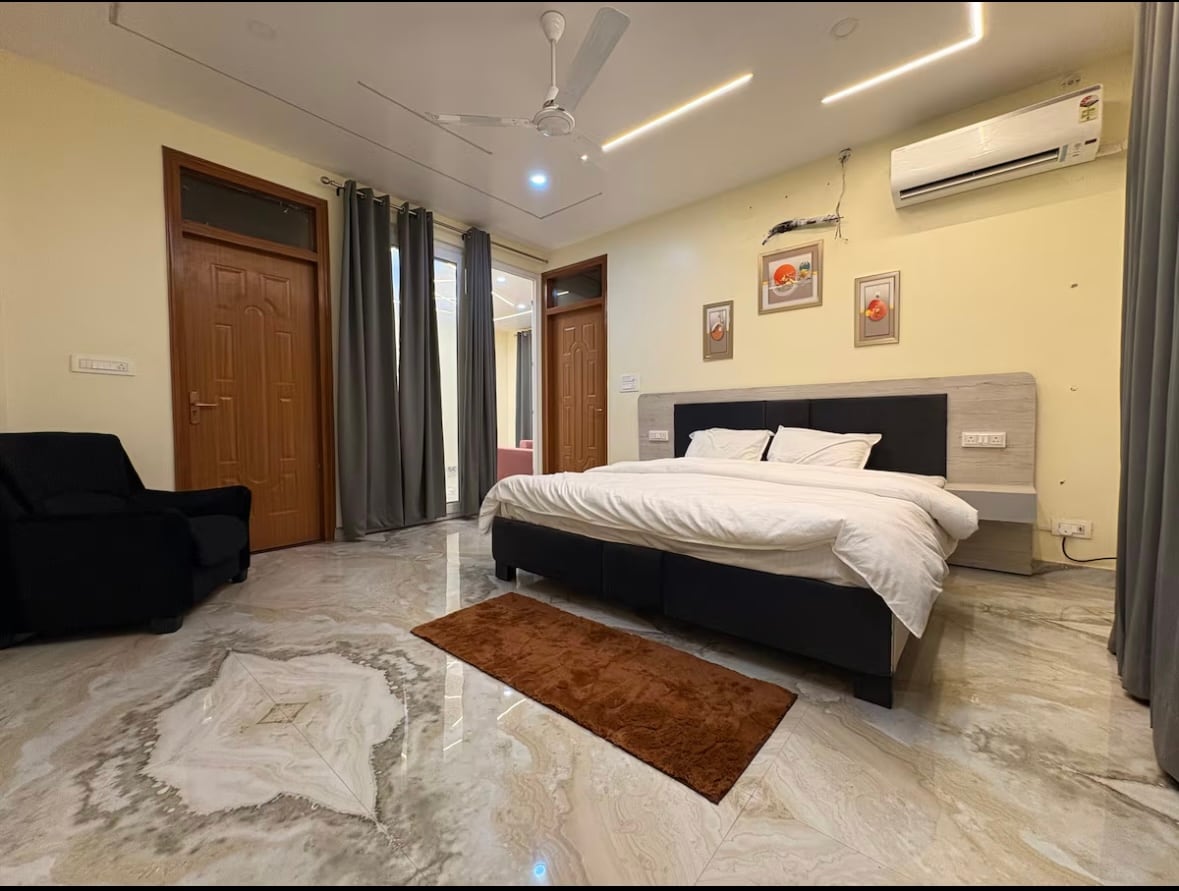 Experience comfort in our spacious 2-bedroom apartment in a secure gated society. Enjoy cozy memory foam mattresses, a fully automatic washing machine, a stylish living area with a 5-seater sofa, and a smart TV. A personal cook is available for delicious, homemade hygienic meals. Perfect for families or business travelers seeking convenience and a homely stay.