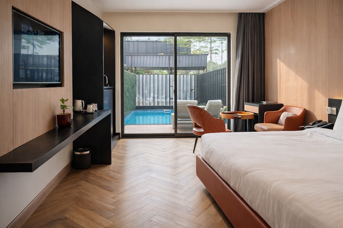 Experience boutique comfort at La Casa Residency, Lucknow's modern retreat designed for business and leisure travelers alike. Our Executive Room offers extra space, elegant interiors, and a peaceful corner location — perfect for those who value style and privacy. Located in the heart of the city, enjoy easy access to popular shops and restaurants from this charming place to stay. Guests can also enjoy in-house dining from La Casa Kitchen and easy access to Gomti Nagar's key attractions.