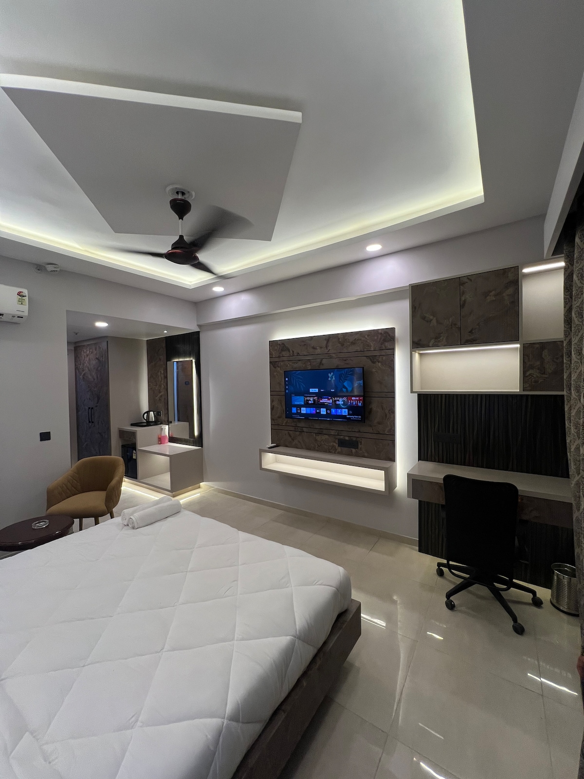 Nestled in the heart of the city, [Hotel SS Royal]is a stylish and affordable 3-star hotel that offers a perfect blend of comfort, functionality, and warm hospitality. Whether you're traveling for business or leisure, our thoughtfully designed rooms are perfect for you. Each room features modern amenities including free Wi-Fi, air conditioning, a flat-screen TV, cozy bedding, a work desk, and attached bathroom. Experience a stay where convenience meets comfort — only at Hotel SS Royal..