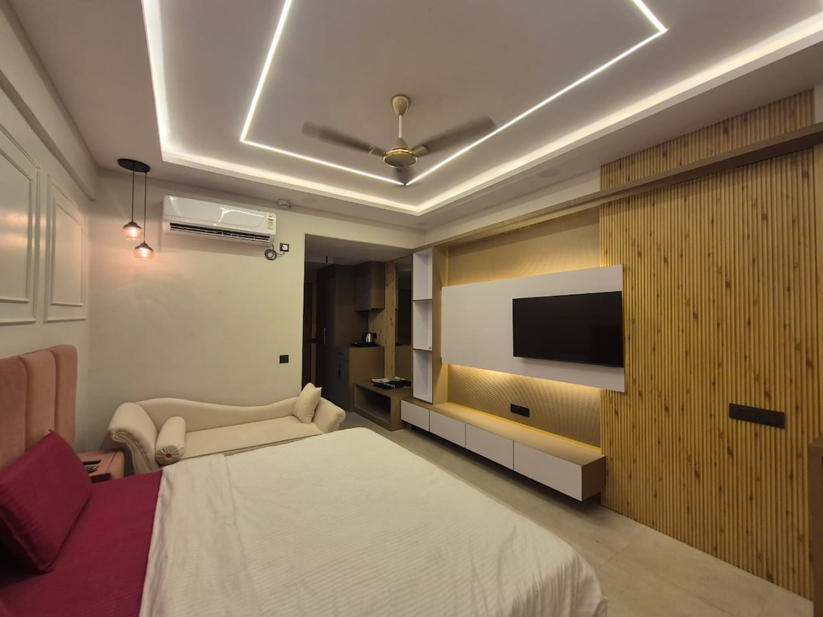 This luxury 2BHK penthouse sits on a hotel rooftop, giving you complete independence — no society rules, no awkward neighbors, no interruptions. The lift opens straight into your private rooftop, making it feel like your own sky villa. Perfect for: 🎉 Parties & celebrations 🥂 Pre-wedding / birthdays 🌃 Chill nights with skyline views You get a private rooftop living room with kitchen, 2 rooms, 2 washrooms , all amenities, extra matress if needed (chargeable) All damages will be chargeable.