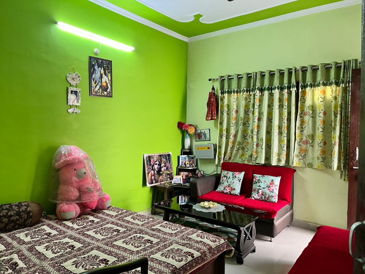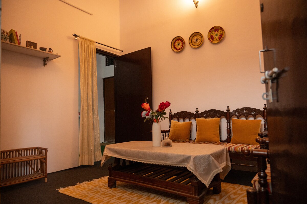 Elegant Villa Room with Garden View Unwind in our serene, sunlit villa room nestled in the heart of the city . This spacious private room features a plush king sized bed, ensuite bathroom, and charming rustic decor. Doors open to a private patio overlooking lush gardens—perfect for morning coffee . Ideal for couples, solo travelers, or digital nomads seeking comfort, privacy, and a peaceful escape—yet just minutes from local attractions and cafes. Homemade customised food arrangements mughlai