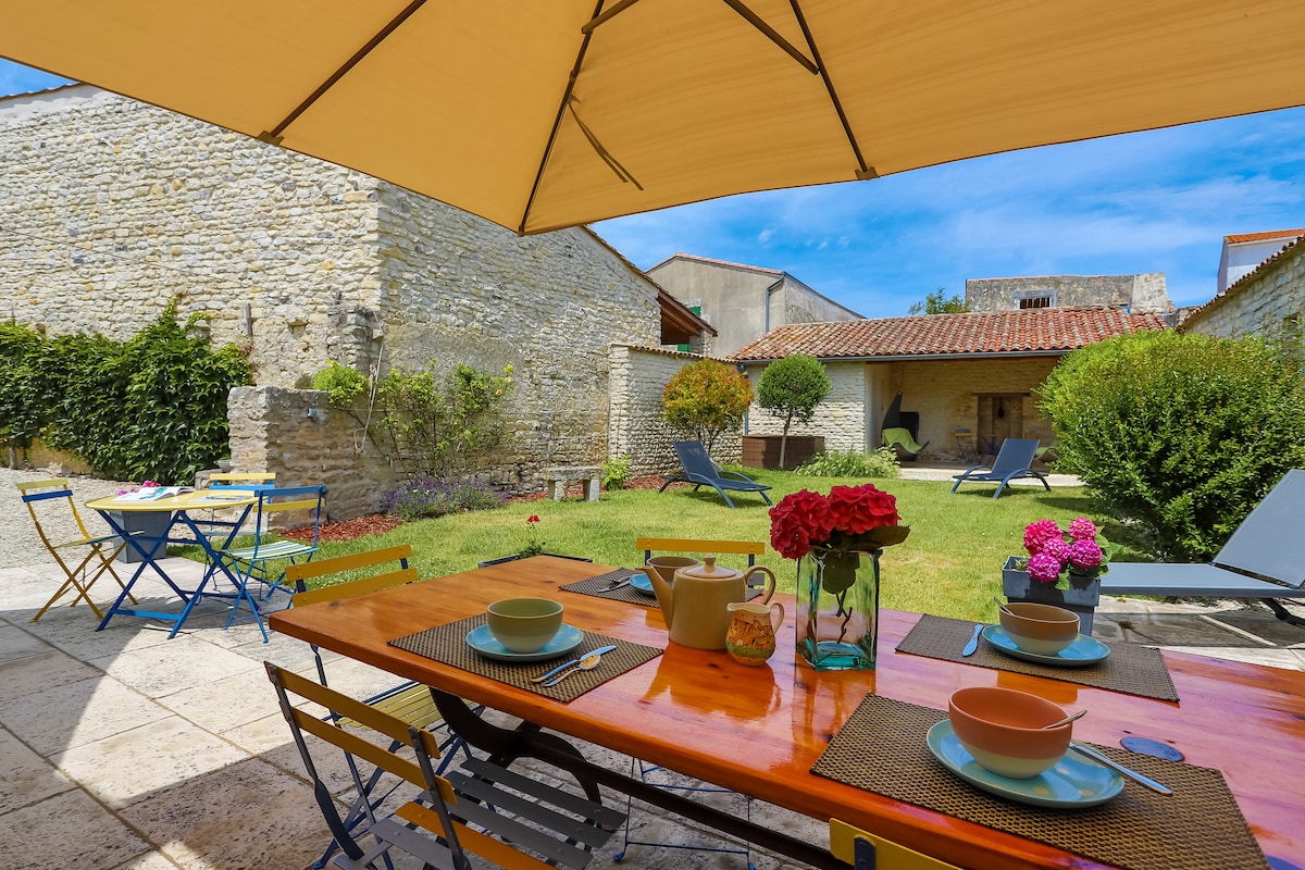 CLASSÉ MEUBLÉ DE TOURISME ⭐️⭐️⭐️⭐️ Entre la rochelle et l'ile de ré , à 300m de l’océan, maison familiale de 150 m2 au calme avec jardin et piscine chauffée sur une parcelle de 720m2. Elle se situe dans le petit village ostréicole de Lauzière, à 800m du port du plomb avec de belles balades en front de mer. Proche restaurants de Poissons et fruits de mers (à pied) L’île de ré n’est qu’à 20 minutes en vélo ! La maison se situe à moins de 5km du Golf de Marsilly