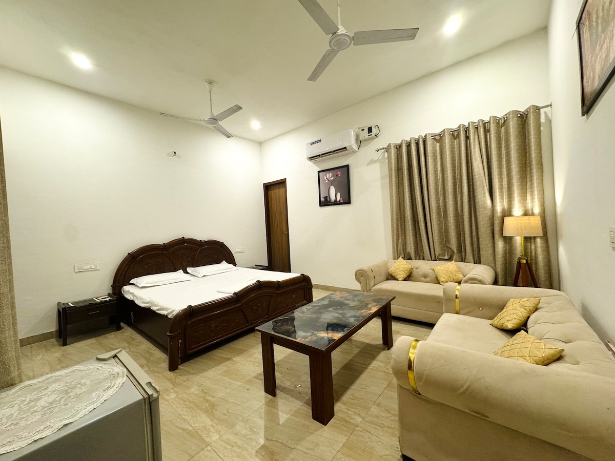Forget your worries in this spacious and serene space. You get a great space with lawn and patio furniture, there’s always home care taker available. Unmarried couples Not Allowed. Smoking NOT allowed. Great music system available