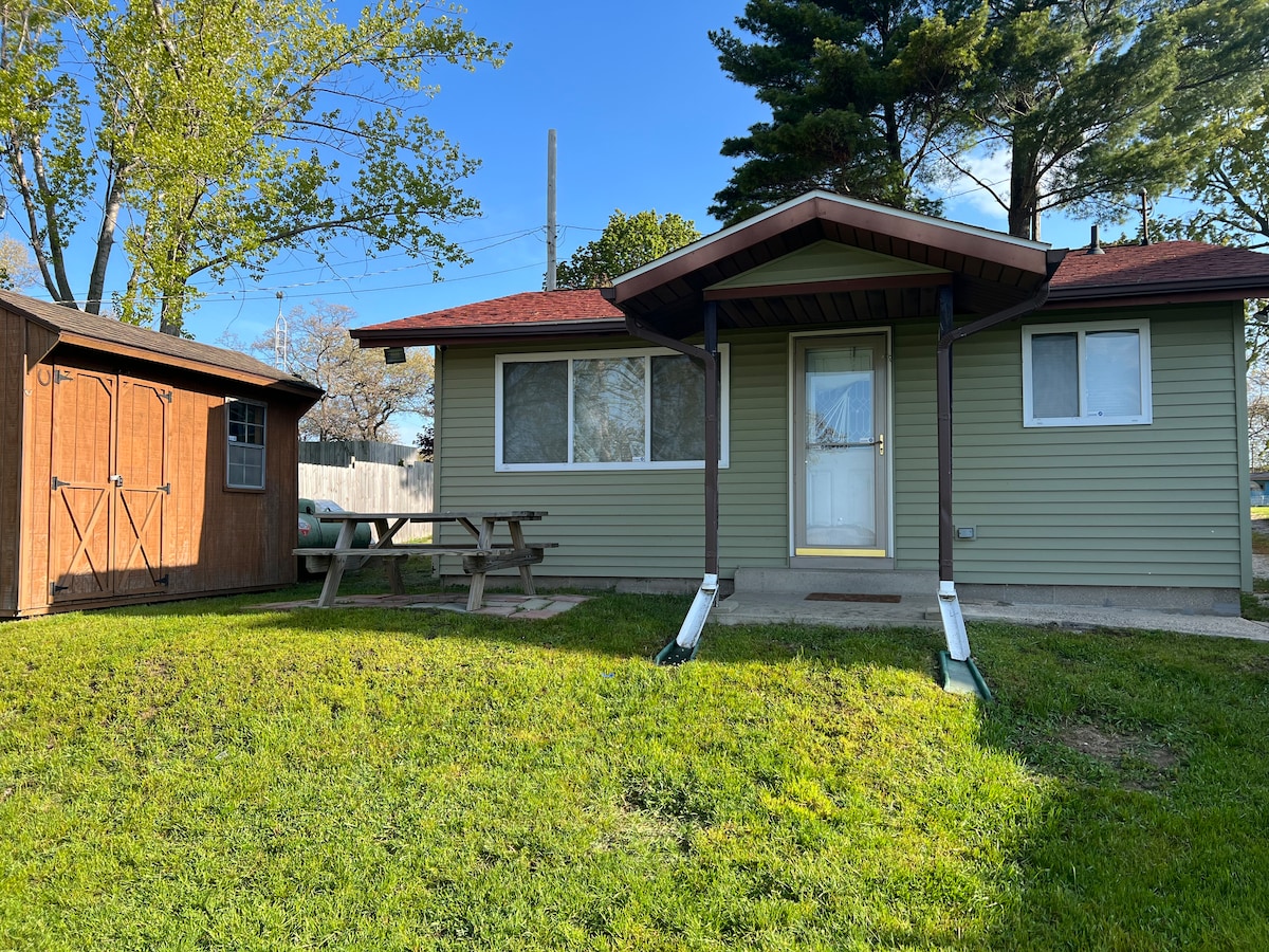 Cute cottage close to the beach and downtown. Steps away from Mears State Park and Old Baldy. Older and modest cottage perfect for a beach visit or a quick getaway away to quaint Pentwater Village. This is not a fancy property. Parking available along with amenities. A cozy space for indoor visiting and outdoor talks. There is a tub/shower combination, electric heat, window a/c (it's a small space), kitchen with stove top, toaster oven and microwave, living area with two bedrooms.