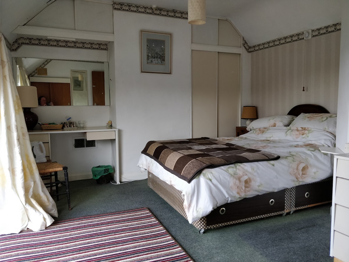 Situated approx 2miles from Three Counties Show Ground, we offer ONE bedroom with a super king bed, which can be split into two singles. A sitting-room with glorious views to the East and the Cotswold edge. There is off road parking, private entrance, new bathroom and new separate loo, kitchen and spacious hallway. There are stone steps down to the flat. Self contained. Breakfast ingredients provided.