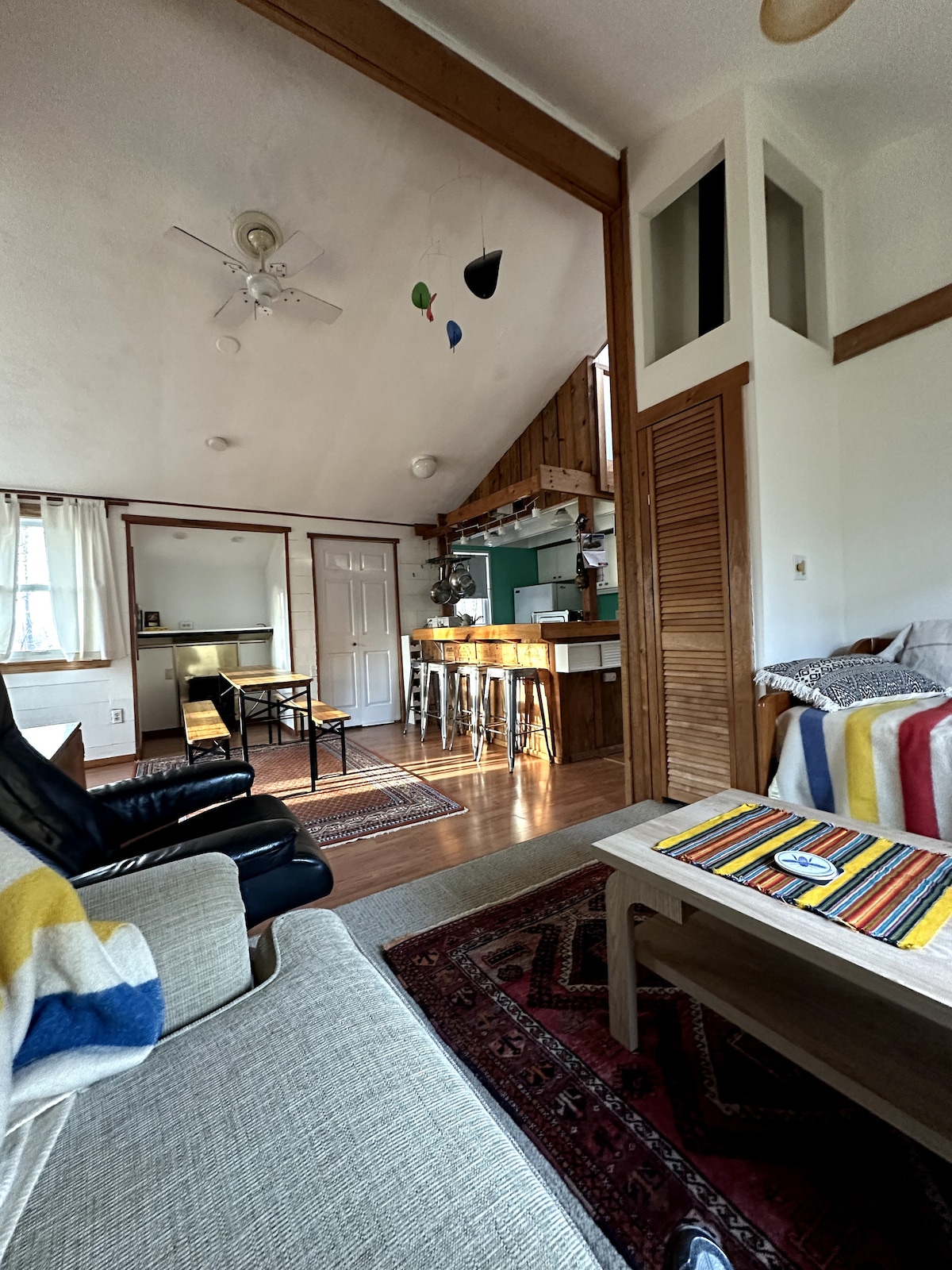 Cute, Cozy & Charming, our rustic, Studio Cabin is on 5 private acres near scenic Gale Meadows Pond. We are close to Stratton, Bromley & Manchester and you’ll enjoy beautiful scenery & hiking right outside your front door. The Cabin has an open floor plan with a full bath, galley kitchen & dining/living area with pullout futon couch that converts into a 2nd bed. The sleeping loft is accessible by ladder. Our place is a great fit for couples and solo adventurers looking to get away from it all!