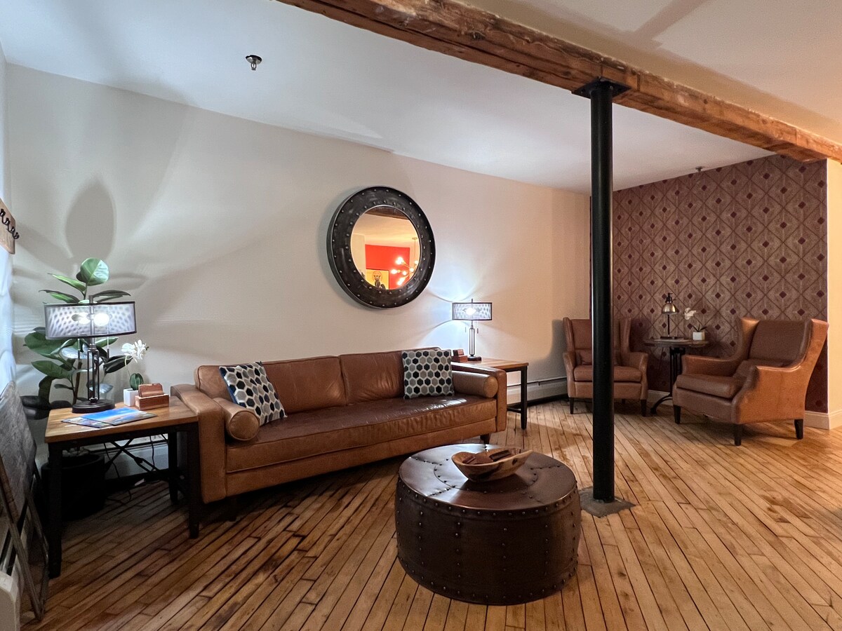 Newly renovated condo at The Mill in downtown Ludlow. Walk to restaurants, bars and shops. Cozy up in front of the fireplace while watching your favorite movie on our 80" TV with sound system. Large enough to invite your friends and family but cozy enough for a romantic getaway. On the Okemo shuttle route. Please note the back deck is temporarily closed due to repairs. Expected to be open by Labor Day.