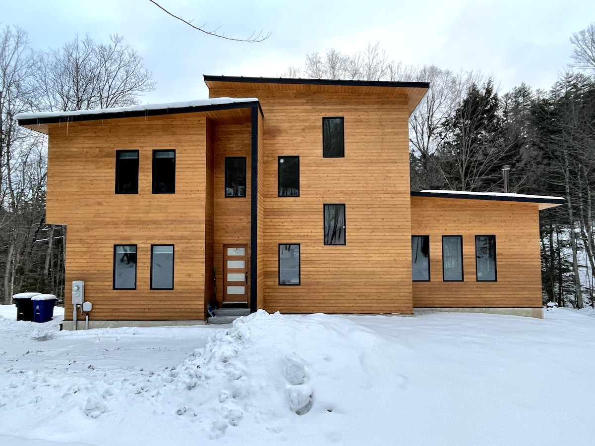 Recently constructed on ten private acres with captivating views of Okemo. Three BR, three full bath, air conditioned modern chalet, just 1.5 miles from downtown and 3 miles from Okemo’s base areas. Epic views of Okemo and surrounding mountains from every room. Cozy around the fireplace in the living room or enjoy smores outside by the firepit, or unwind on the deck. Lower level has second living room great for kids with large TV, comfy couches, Pac Man arcade, foosball and board games.