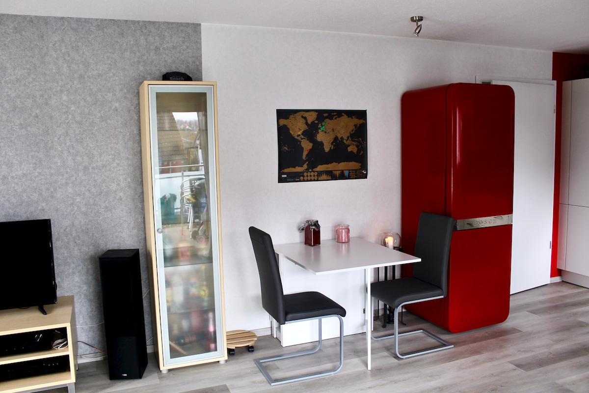Gemütliche Mini Apartment (ca. 18 qm) im Kellergeschoss mit Tageslicht und eigenem Bad. Der Zugang zum Zimmer/Bad ist autark. Lage: Direkt unterhalb vom Schloss Solitude gelegen, direkt am Wald, Spielplatz, Bauernhof und U-Bahn (U6) Haltestelle (ca. 5 Min. zu Fuß). In ca. 25 Min. sind Sie mit der U-Bahn in Stuttgart am Hauptbahnhof / Schlossplatz. Gut ohne Auto erreichbar. Bitte mind. 24h vor Anreise die ungefähre Ankunftszeit mitteilen. Ansonsten ist ein flexibler CheckIn nicht gewährleistet.