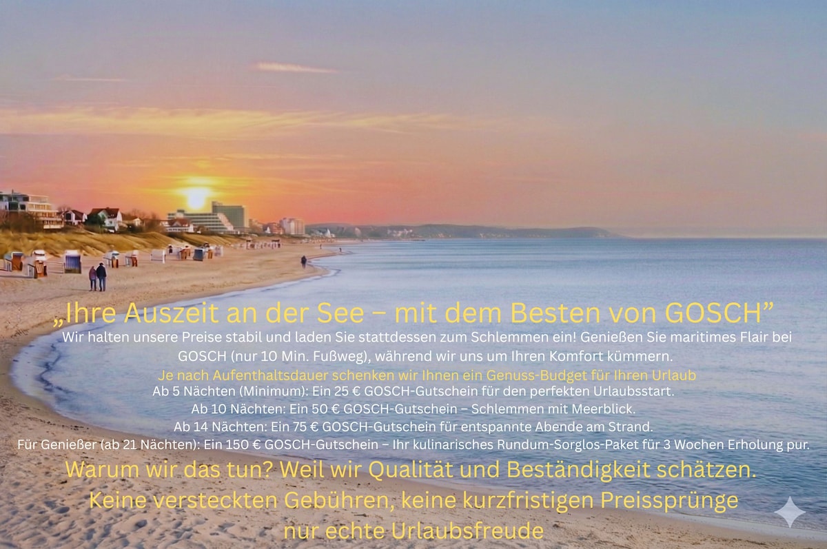 Timmi1: Unsere Wohnung ist ein gemütliches 2,5 Zimmer-Apartment im Zentrum. Zum Meer mit feinem Sandstrand sind es nur 2-3 Gehminuten. Voll ausgestattete Küche mit Spülmaschine, Nespresso, Filter-Kaffee, Toaster usw. Ein Stellplatz ist direkt am Haus. Bettwäsche & Handtücher inkl. SONOS, KabelTV, DVD Player, Wifi. Late Checkout ist oftmals möglich. Bitte vorher absprechen. Bitte beachtet den Hinweis zur Kurtaxe. Ihr benötigt eine zweite Wohnung im gleichen Haus? Schreibt mir gern.