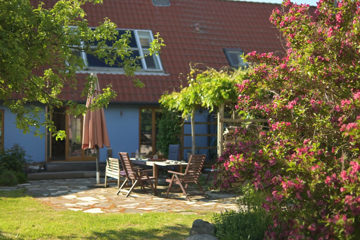 ...neu renovierte Wohnung auf parkähnlichem Hof mit Gartenmitbenutzung. Achtung: Es gibt nur 1 großes Doppelbett & 1 großes Schlafsofa. Saunalandschaft & Pool im Freien. Hier leben, lieben und lachen noch 5-6 andere Menschen. Gemeinschaft möglich, aber auch individueller Rückzug - alles gerne gesehen. Ringsum viel Natur, die zum spazieren gehen oder Fahrradfahren einläd.