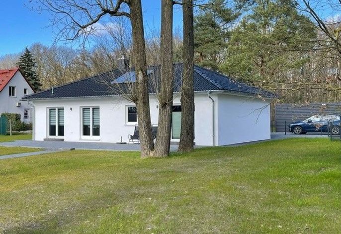 neu: Klimaanlage,Internet 200Mbit und InternetTV - Perfekt für den (Kurz-)Urlaub zu Zweit oder "Arbeiten am See"! Sanierter, gemütlicher Bungalow Nähe des Neustädter Sees. 30qm, tolle Aufteilung. WoZi mit Ledersofa, Kamin, Smart TV, USB Eingang), DAB Radio+CD. Schlafzimmer Doppelbett 140cm; Esszimmer Tisch/4 Stühle. Moderne Einbauküche, Senseo Pad, Mikrowelle/Grill. Dusche gefliester Boden, separates WC. Grosses Grundstück, Terasse, ruhige Lage. Badestelle ca. 400m, Strandbad.