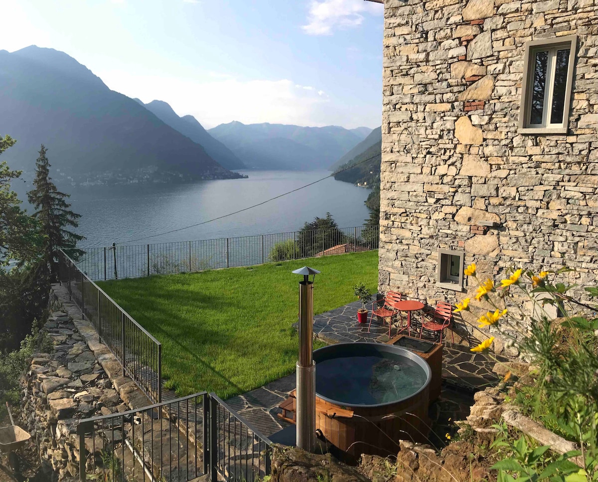 Beautiful stone built 250 year old village house in historic centre of Pognana, 15 mins from Como. Completely renovated and interior designed to highest levels of comfort and luxury in authentic ancient Italian village setting. Very private. Use of whole house (except cellars) with private entrance. Amazing lake views from all rooms including iconic bathtub for two. 2 terraces. Fireplace. Great space for remote working. Free street parking a few mins walk. (Heavy suitcases not recommended).