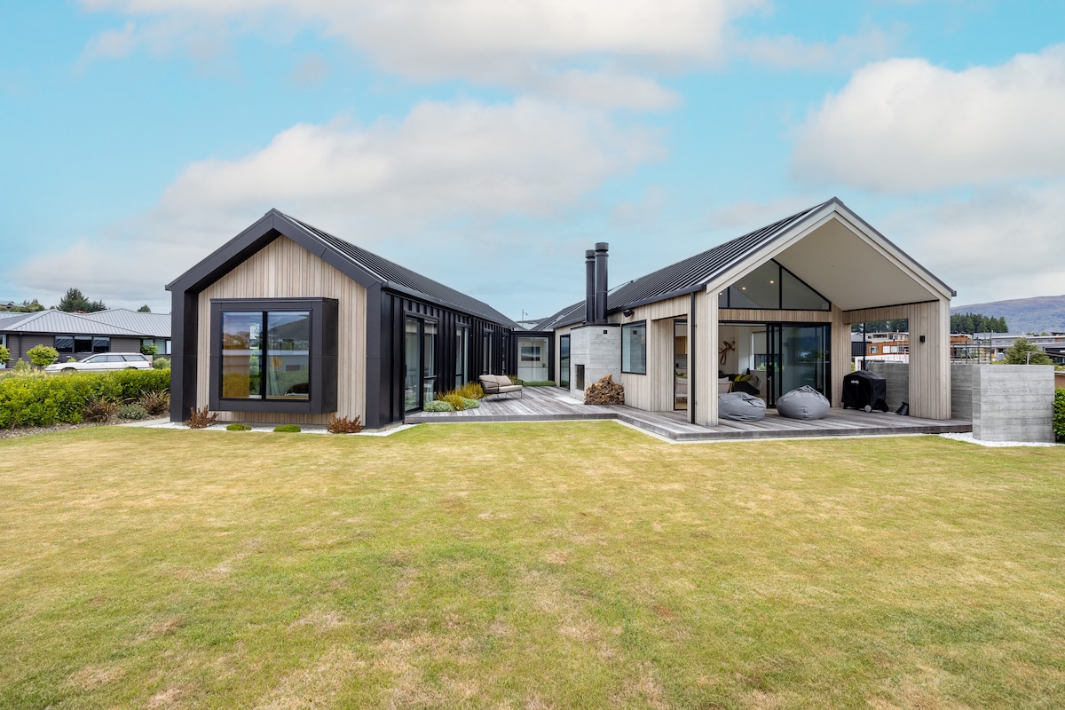 This architectural luxury warm and modern 3/4 bed home plus studio is close to Wanaka, the local trails, the lake and the river. It has expansive mountain views, a huge lawn and privacy. The house is perfect for winter & summer with an underfloor heating and cooling. Enjoy the gas fired hot tub, sauna, ice bath and shower after a day out on the mountain or the lake. There's also plenty of fun and fitness options too including a trampoline, outdoor games, treadmill and yoga/gym equipment.