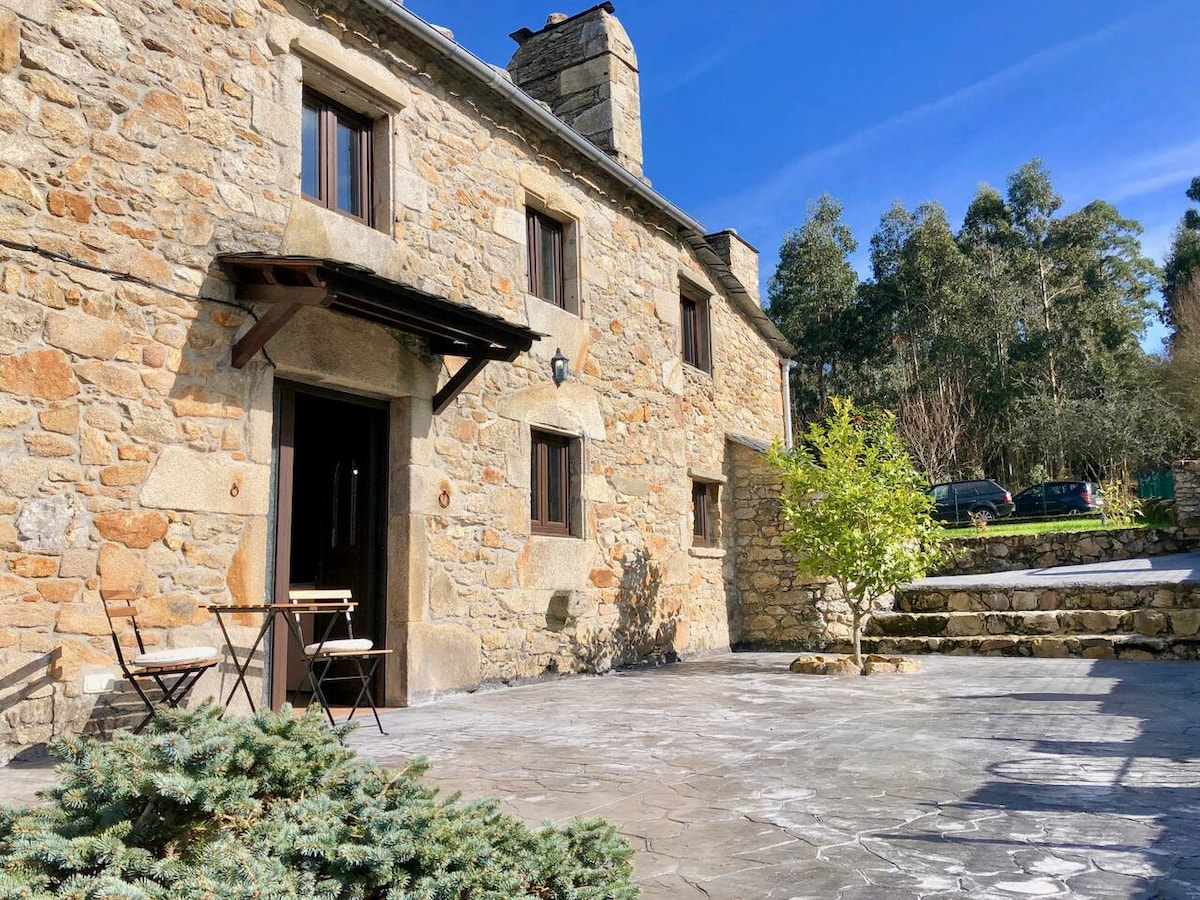 A historic house in a typical Galician setting, a place of simple life, farmers, orchards, and farms, yet just meters from the Sor River and 2 km from the renowned, long white beach of Arealonga and its adjacent villages, filled with sea life. The cottage, tastefully and qualitatively decorated, offers guests comfort that captures the living and outdoor spaces. Equipped with a separate barbecue area and a Txoko (a place to enjoy the wood-burning stove), it also has a private, enclosed garden.