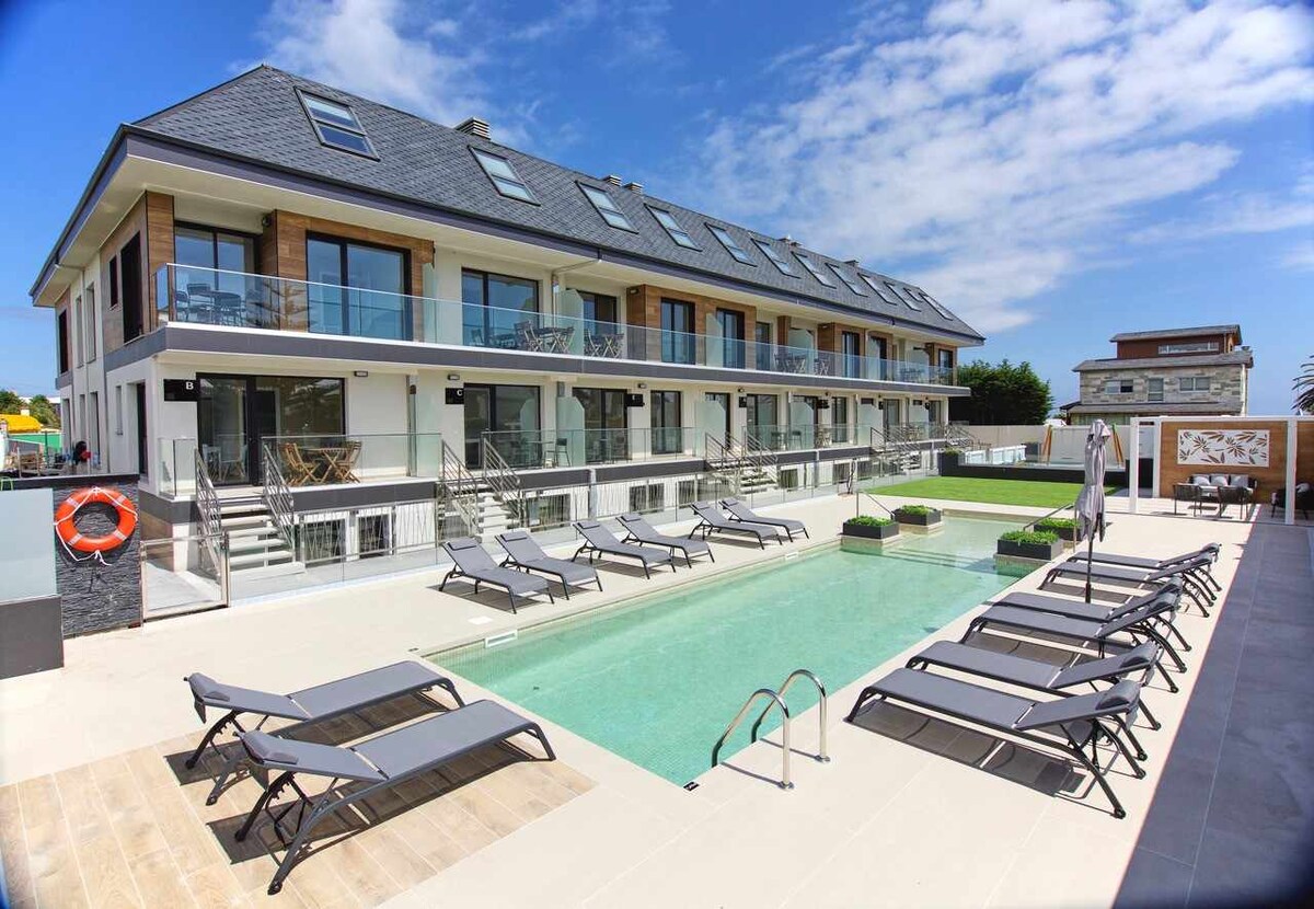 Modern apartment for 4 people on the ground floor with two double bedrooms, living room, kitchen and bathroom. Completely adapted for people with reduced mobility. It has a swimming pool, laundry, soccer field, barbecue area, meeting room and games room. Located next to La Paloma beach, it is an ideal place to visit the coast of Asturias and Galicia. Ideal for families, due to its green areas and leisure areas.