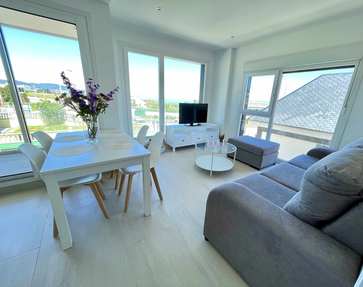 This spectacular and bright penthouse with views has been completely renovated and carefully designed exclusively for holiday use. Lovingly decorated and designed to offer a unique space in this small and charismatic coastal town, once a seaside village, O Vicedo has taken advantage of its geographical paradise, its routes and villages, its culinary offering, the endless tranquil beaches typical of this wild Galician north, and ultimately... a place not to be forgotten.