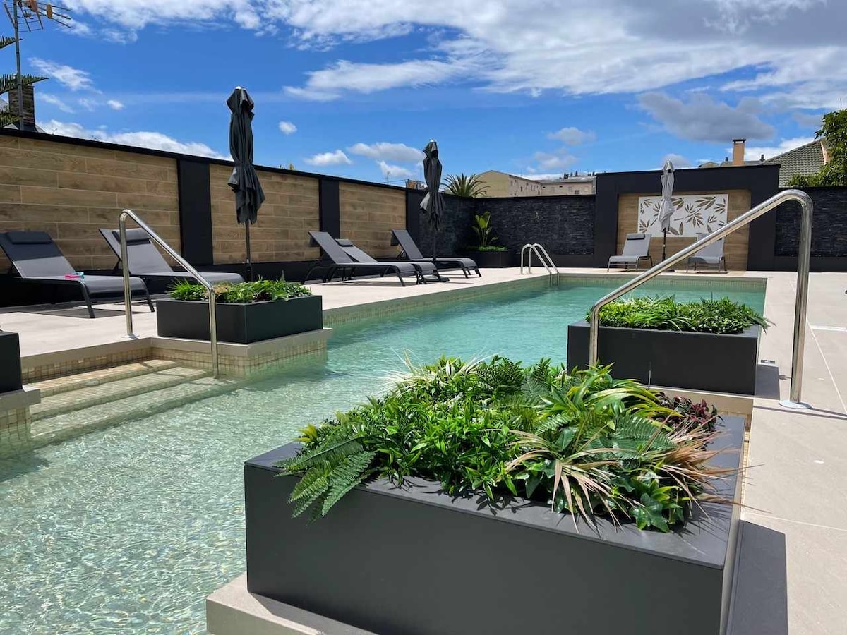 estudio totalmente equipado para 4 personas con 1 cama de 150×190 y sofá cama de 140×190 WIFI gratuita aparcamiento privado gratuito climatización (frio/calor) TV de pantalla plana lavadora, lavavajillas, placa de inducción, micro ondas, nevera con congelador ducha a ras de suelo terrazas privadas con vistas a la montaña accesibilidad al parque privado con mesas y con vistas al mar playas a 0.5km