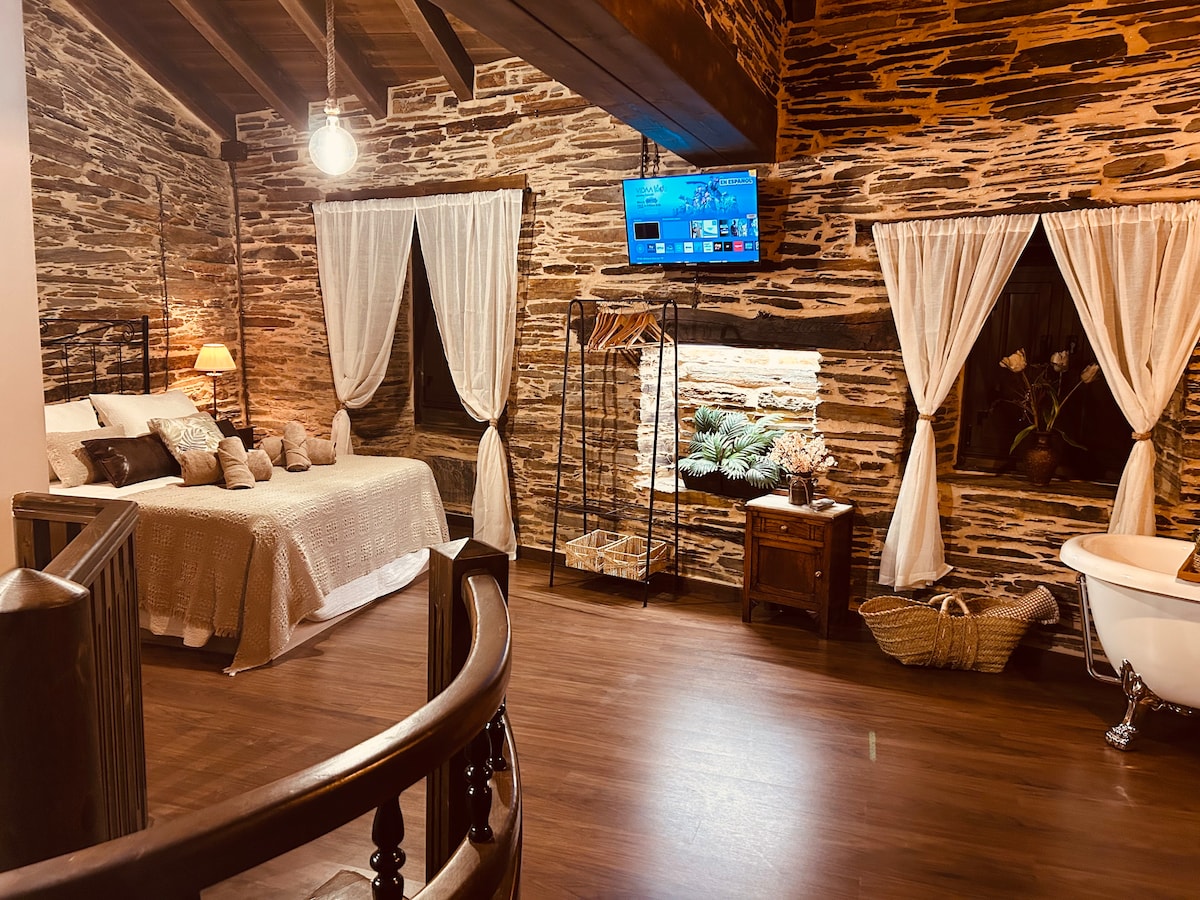 Casa Elenita is located in a privileged location, in the heart of the Ribeira Sacra, within the rural center of Santo Estevo de Ribas del Sil, in the upper part of the village. In that area, the views of the mountains that surround the Sil River are unmatched. It is an environment dominated by silence and calm. The house, built in the mid-19th century, has been completely renovated, maintaining the essence of stone and wood, to offer a cozy and unique stay.