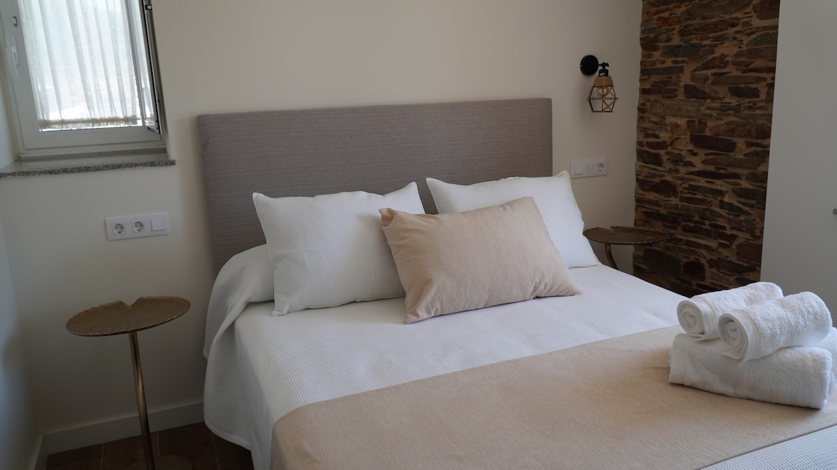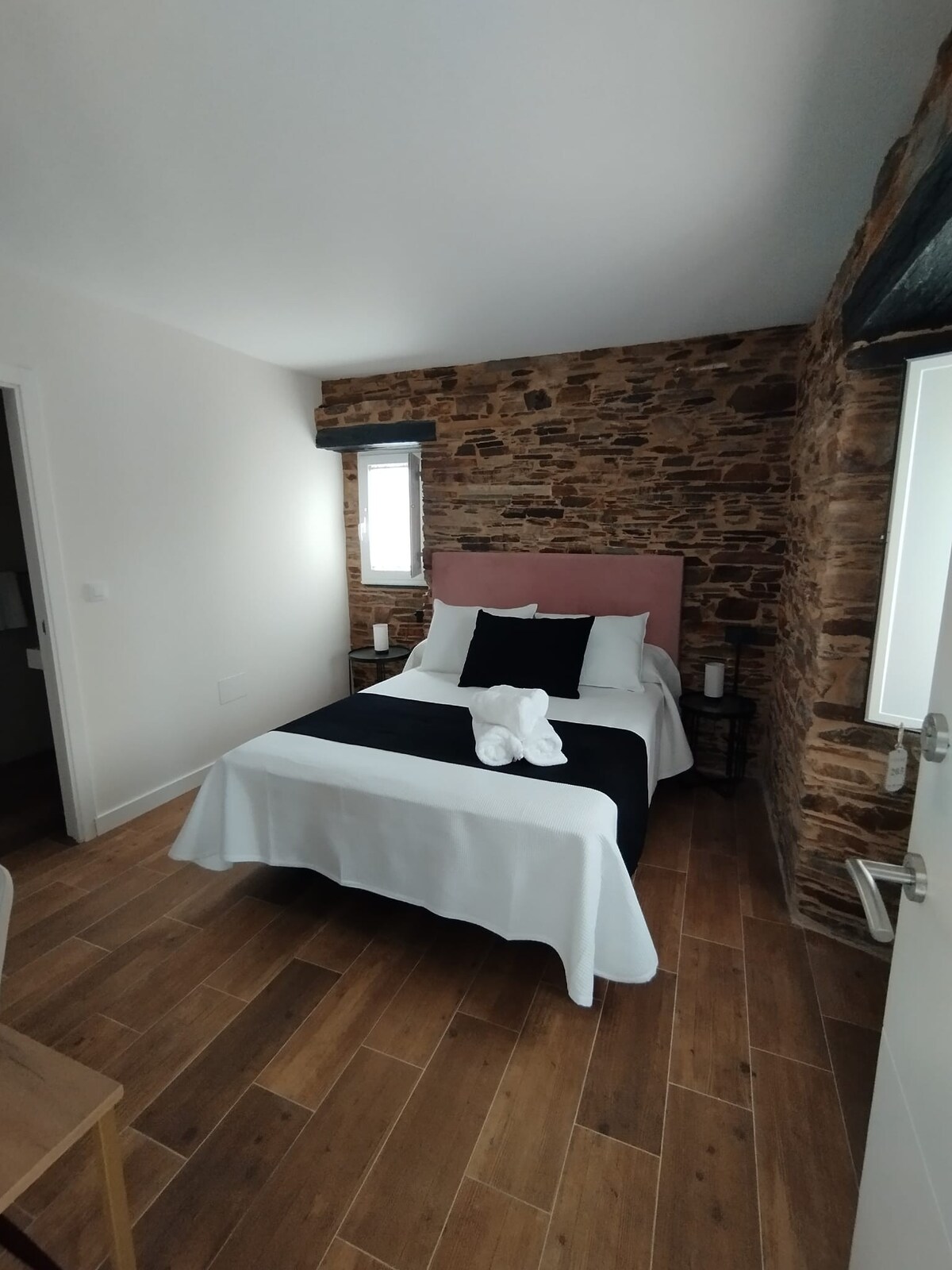 Habitación diseñada para dos personas. Ofrece comodidades y espacio adicionales, proporcionando una experiencia de alojamiento de alta gama. Cama grande de 135 cms. y comodidades modernas para una estancia confortable y relajante. Hotel rural situado en el verde campo de Galicia, a 10 km de la costa. Ofrece encanto y carácter y cuenta con una espaciosa terraza situada junto al río y con un bar-restaurante. La rústica decoración del hotel está en plena armonía con su emplazamiento..