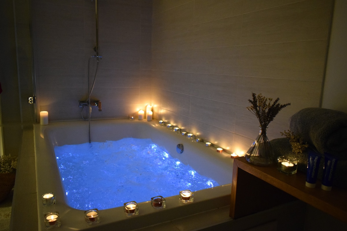 Our Suites feature a living area with a fireplace, a 40" TV, and a small kitchen. In the same open-plan space, you will find a 150 cm bed and a spacious whirlpool bathtub for two. In addition, each Suite has Wi-Fi, private garden and heating, ensuring comfort at any time of the year. If you prefer not to worry about anything, in the morning we deliver a freshly prepared breakfast in a basket, featuring locally made artisanal products.